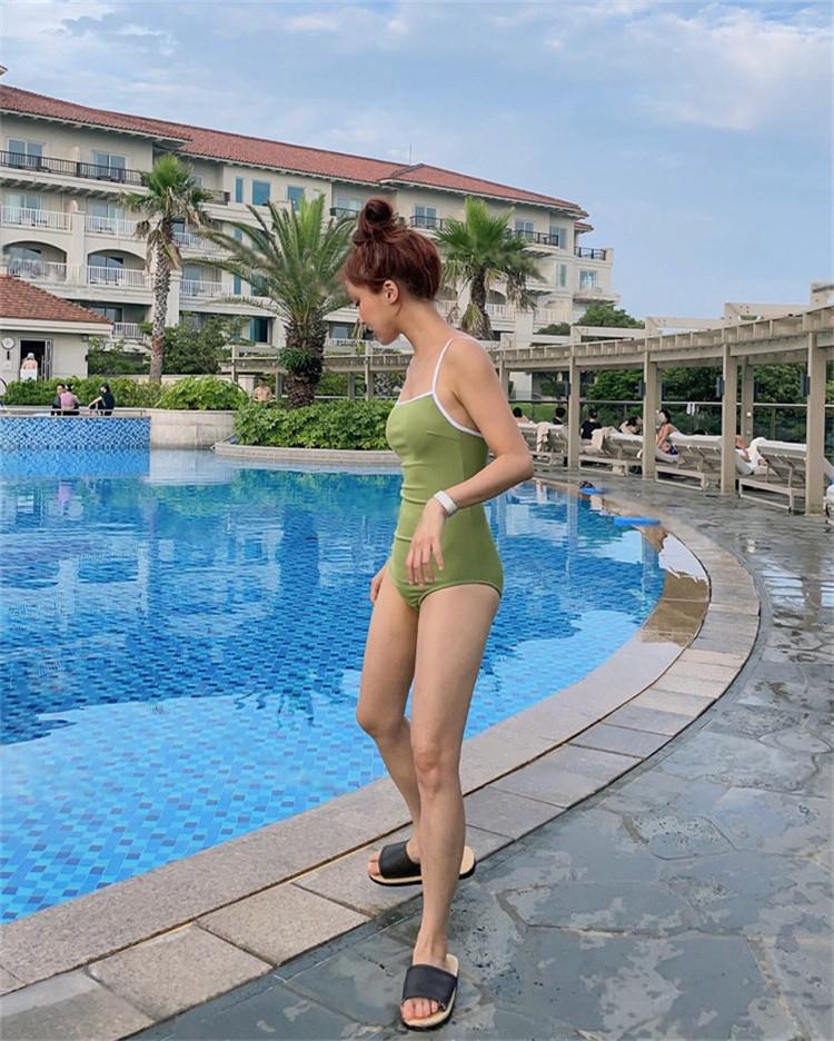 Traje de baño de estilo ins nuevo 2025 para mujer, bikini de una pieza sexy, vacaciones en aguas termales, cubre el vientre, adelgazante, traje de baño coreano