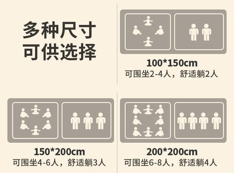 100*150cm (can seat 1-3 people) 150*200cm (can sit 4-6 people) 200*200cm (can sit around 5