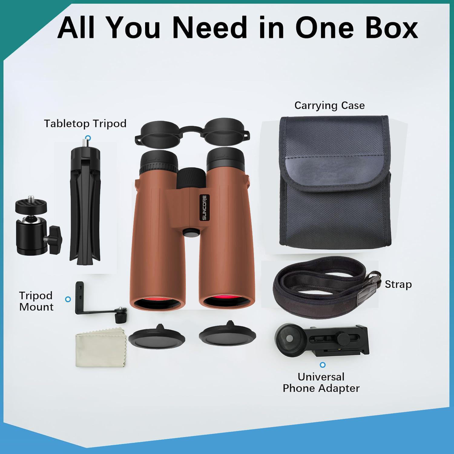 Binoculares SUNCORE Shun Guang de gran tamaño con ocular para lluvia de meteoritos, 12x52, alta definición, disponibles en stock.