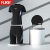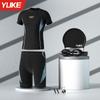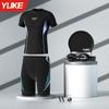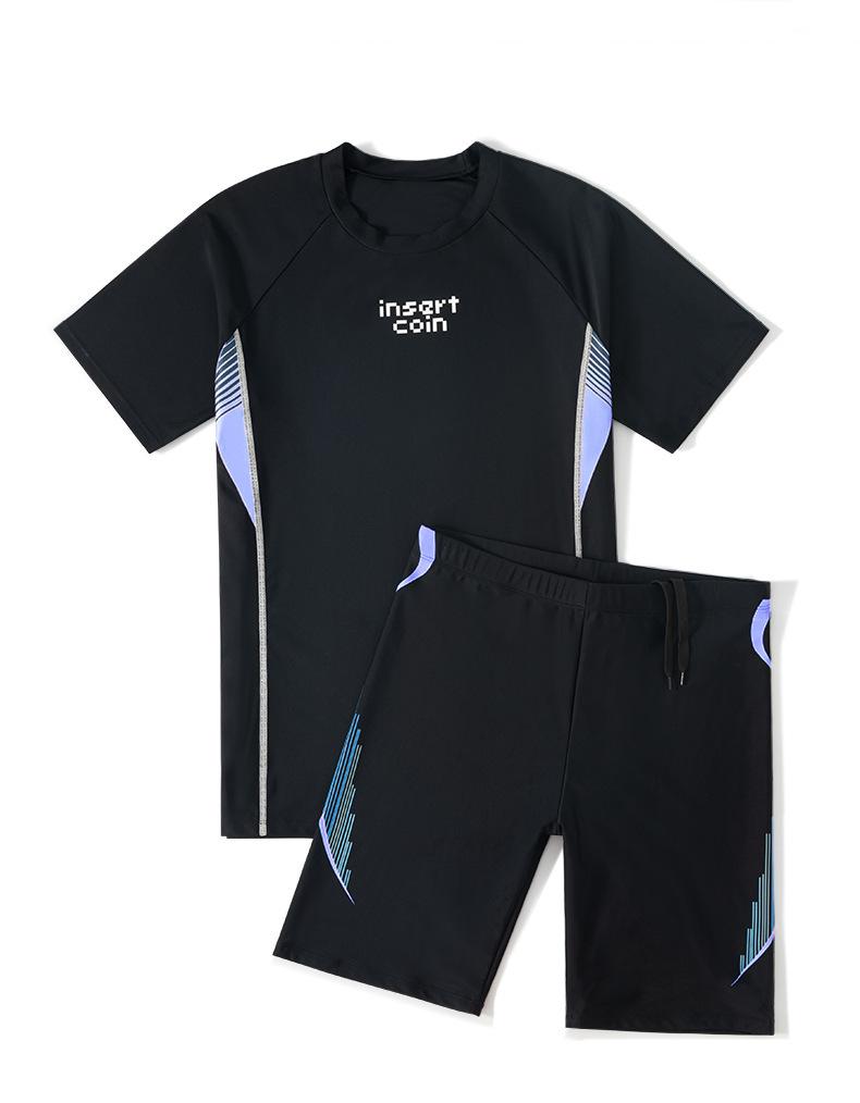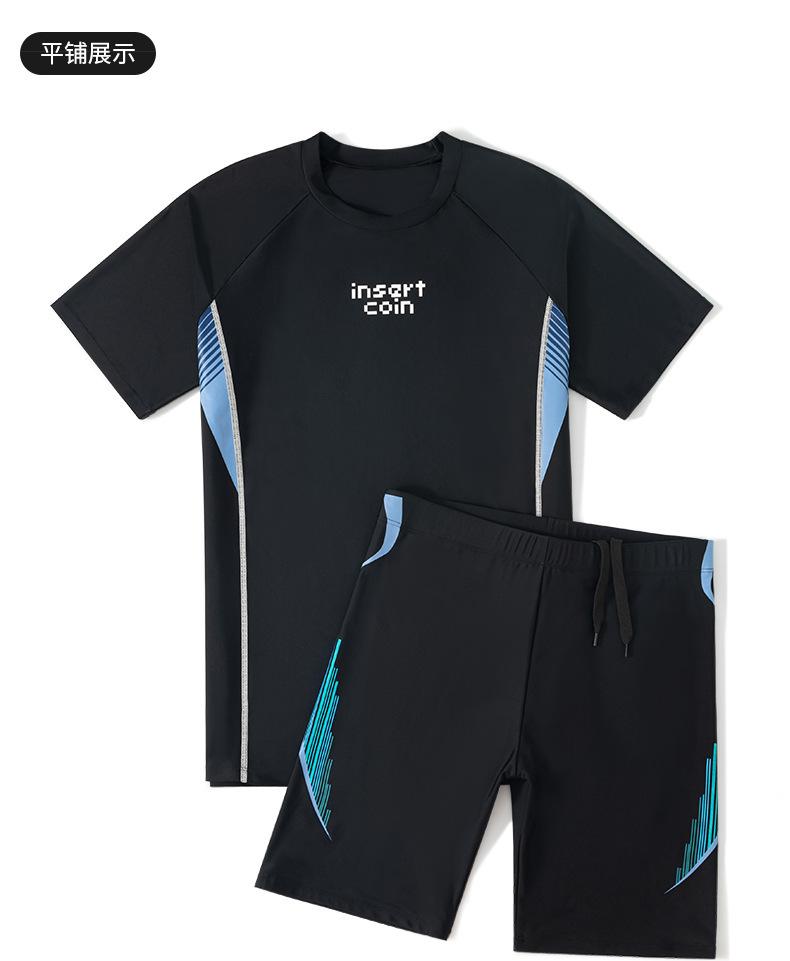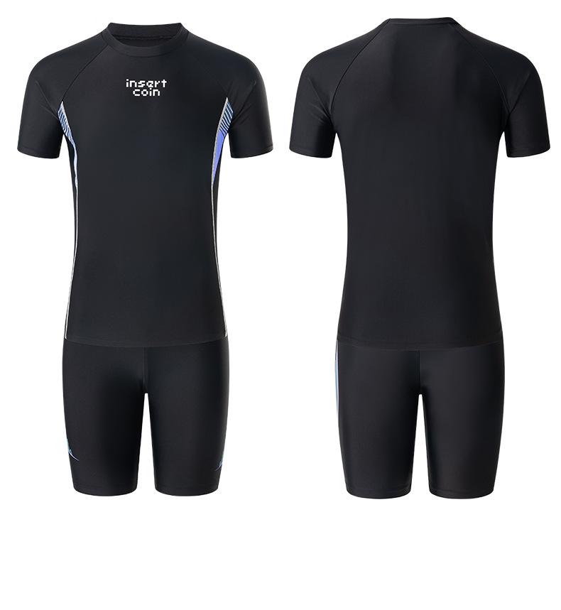 Trajes de baño para hombre, nuevos pantalones cortos de manga corta, traje de baño dividido, pantalones tipo bóxer, equipo de natación profesional antivergüenza