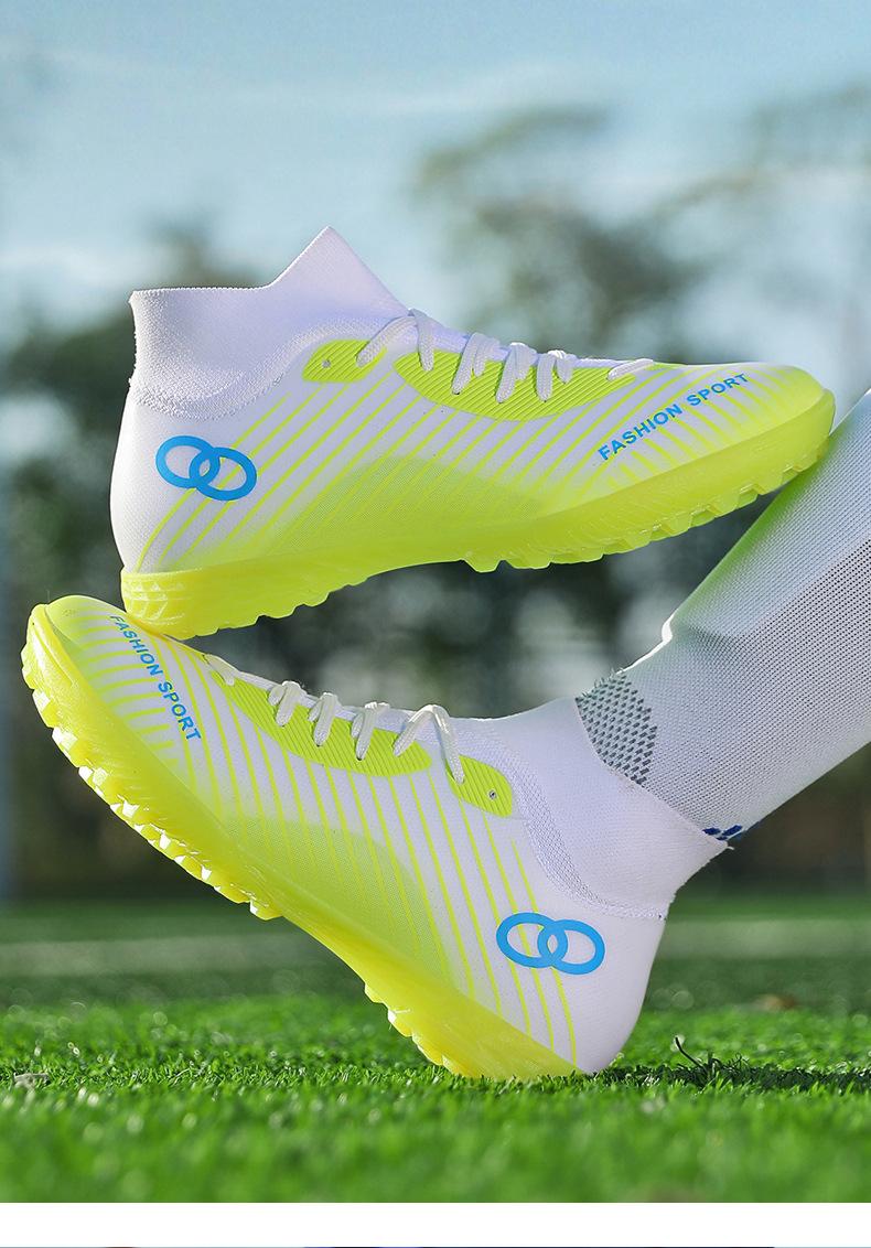Transfronterizo Nuevo Top Alto Sin Costuras Tejido de Mosca Zapatos de Fútbol para Adultos Estudiante Pareja Antideslizantes Entrenamiento Competición Zapatos de Tacos