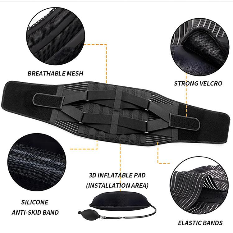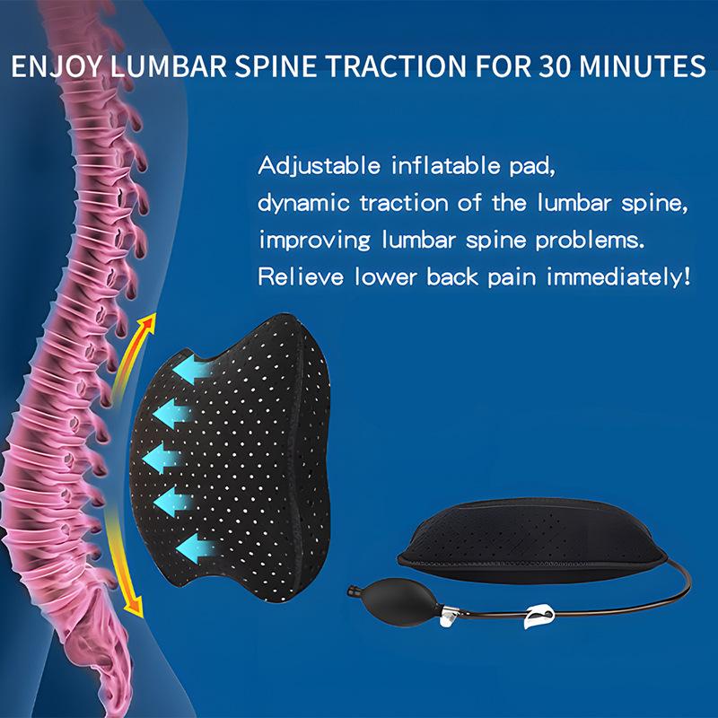 Cojín inflable removible y ajustable, tracción dinámica de la columna lumbar, mejora los problemas de la columna lumbar. ¡Alivia el dolor de espalda inmediatamente!