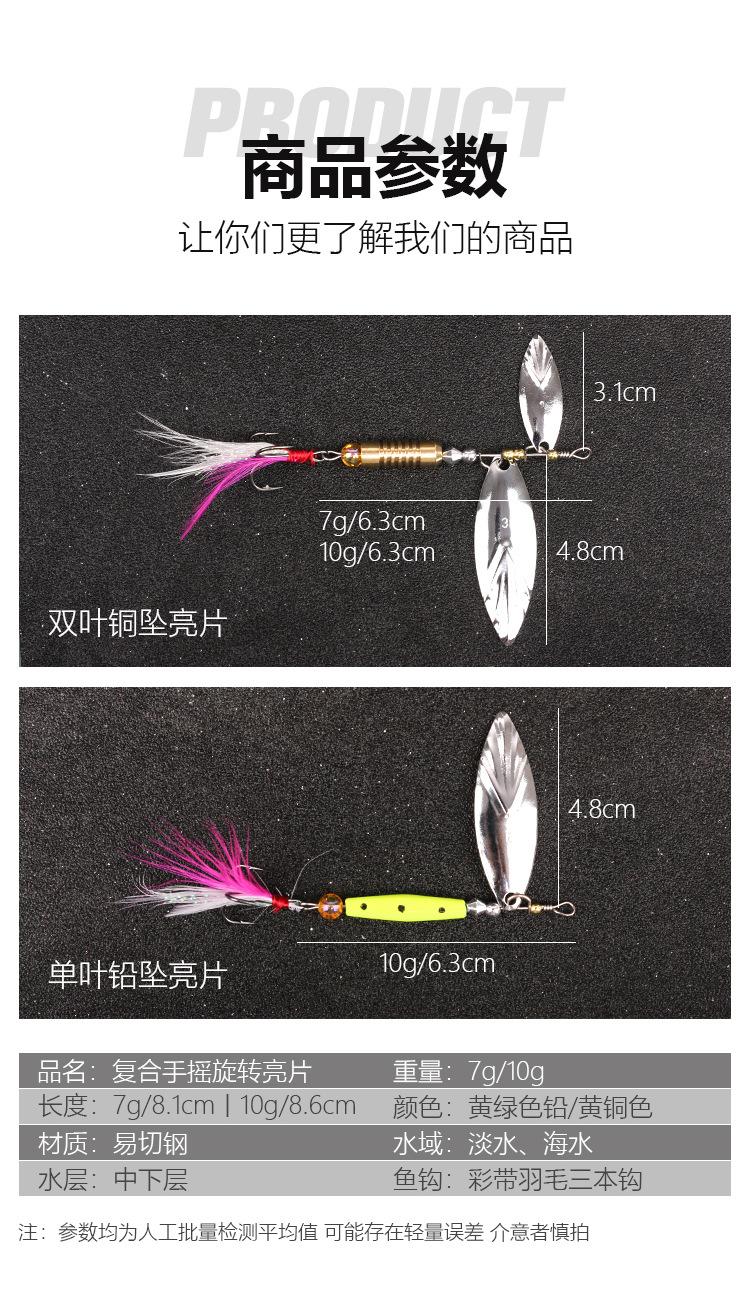 Uso: Atar directamente a la línea de pesca con señuelo, enrollar a una velocidad constante después del lanzamiento.