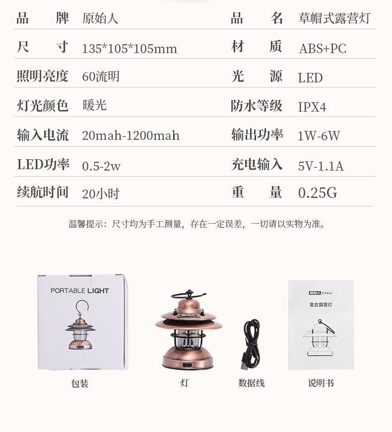 Luces para acampar al aire libre, luces de carpa de larga duración, iluminación colgante, atmósfera de acampada, dosel primitivo, luces retro recargables