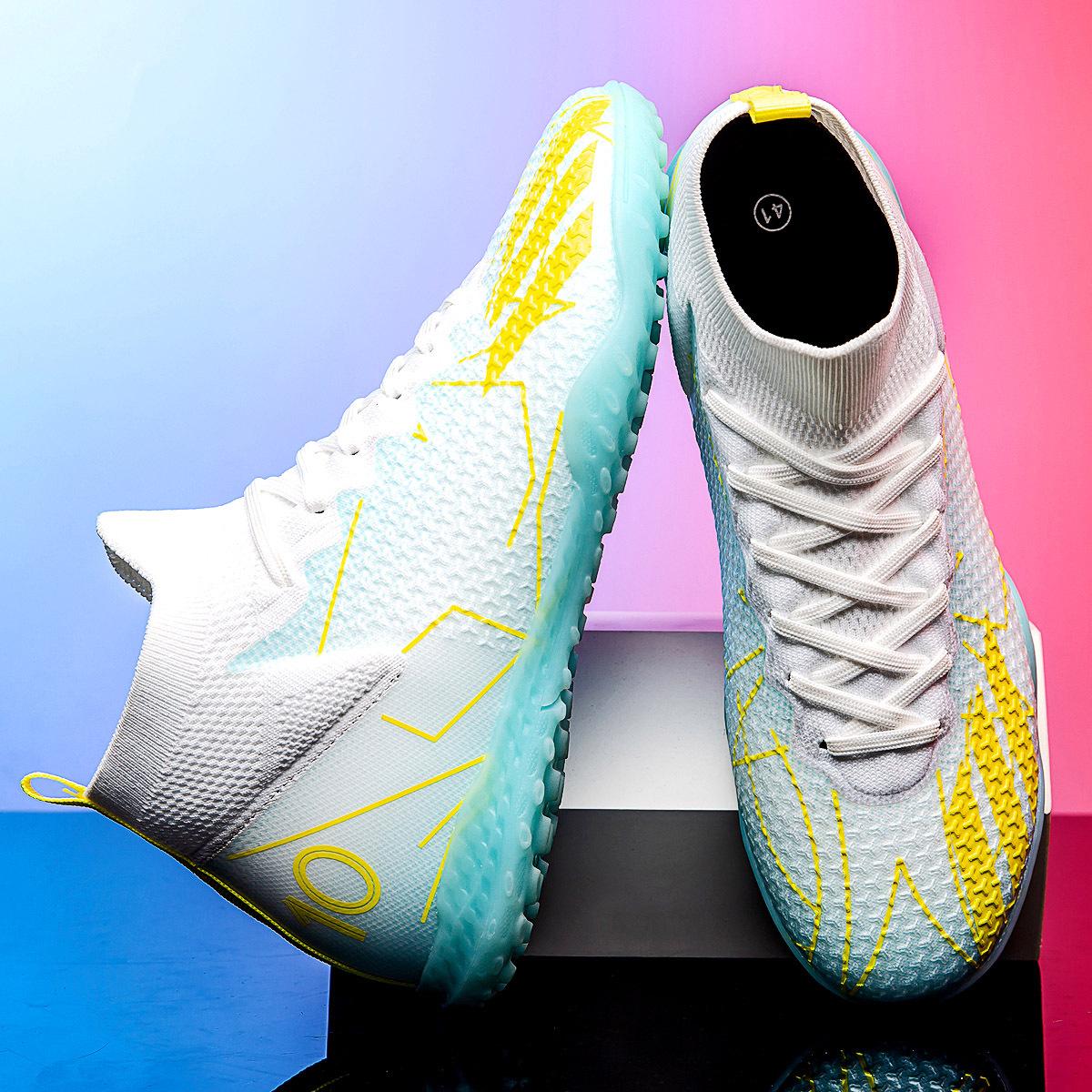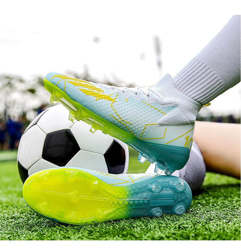 Nuevos Zapatos de Entrenamiento de Fútbol de Caña Alta Transfronterizos Ag Uñas Largas Tf Uñas Rotas Césped Artificial Antideslizantes Resistentes al Desgaste Zapatos de Fútbol de Competición