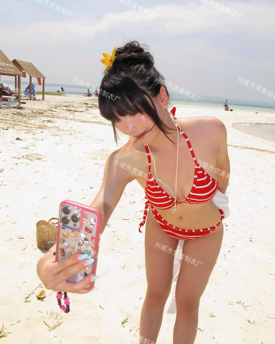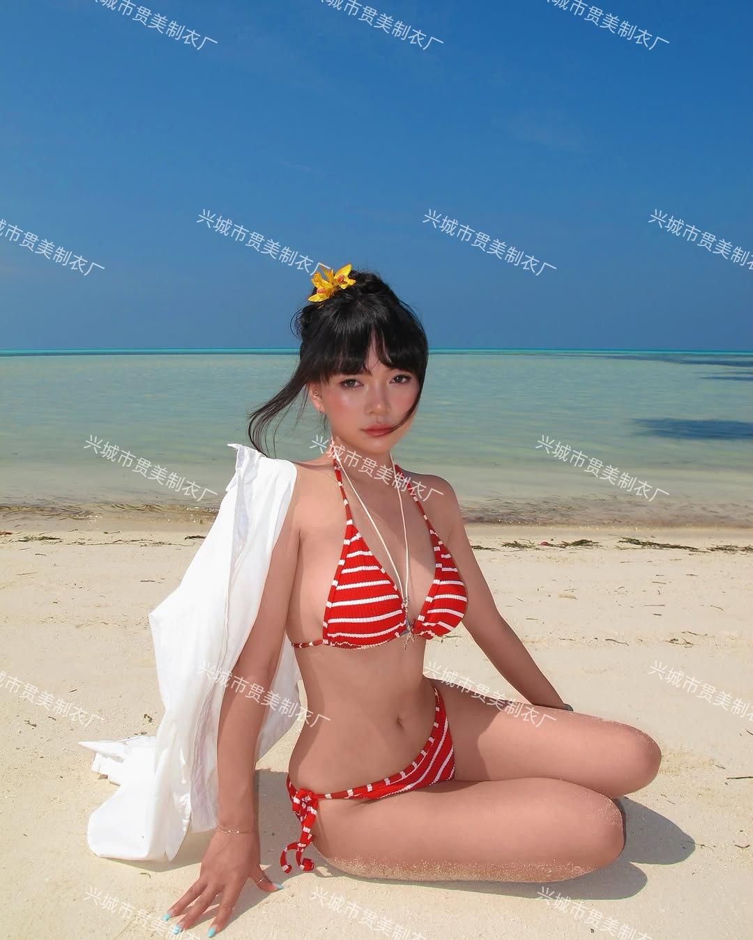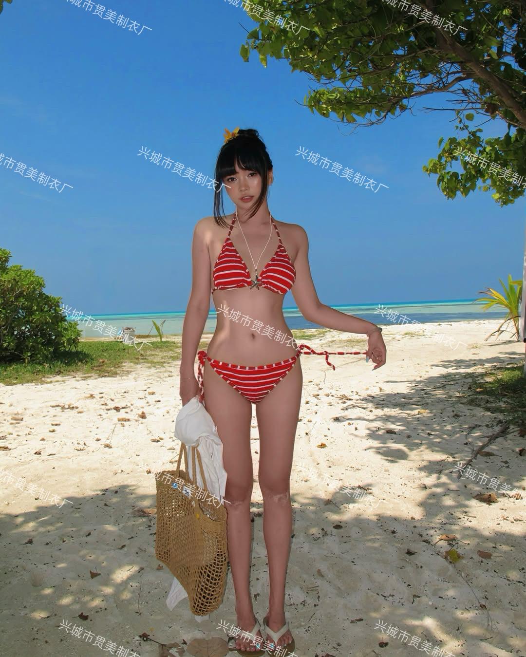Oferta especial Traje de baño Nuevo estilo Bikini de rayas simples con cordones Sexy Pure Desire Traje de baño de playa simple para mujeres