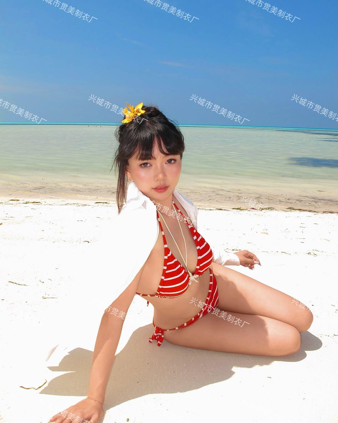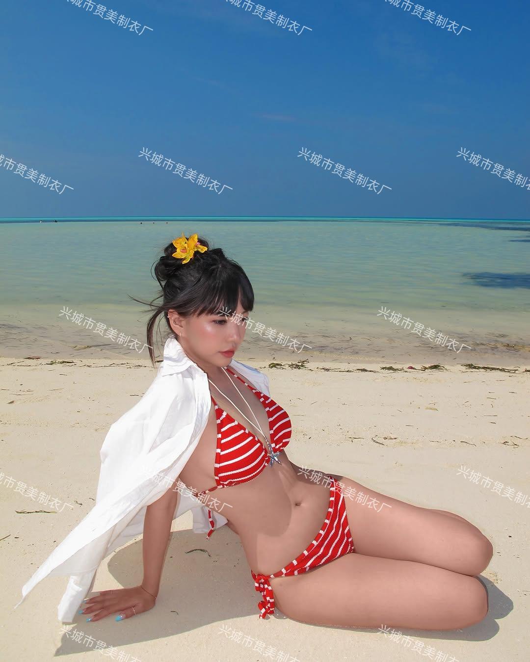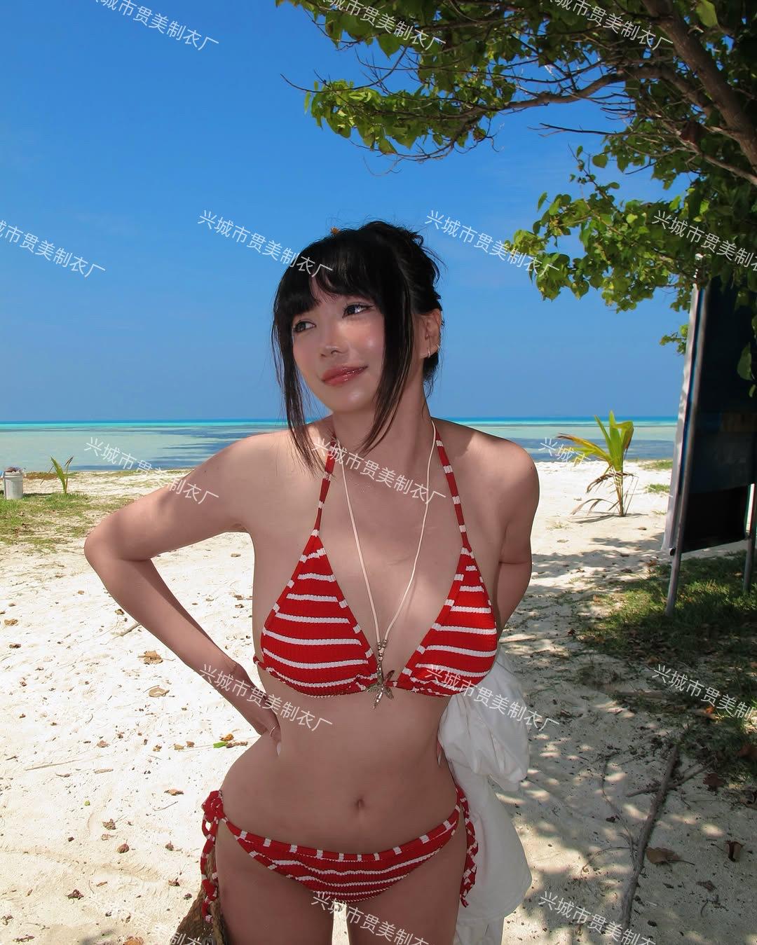 Oferta especial Traje de baño Nuevo estilo Bikini de rayas simples con cordones Sexy Pure Desire Traje de baño de playa simple para mujeres