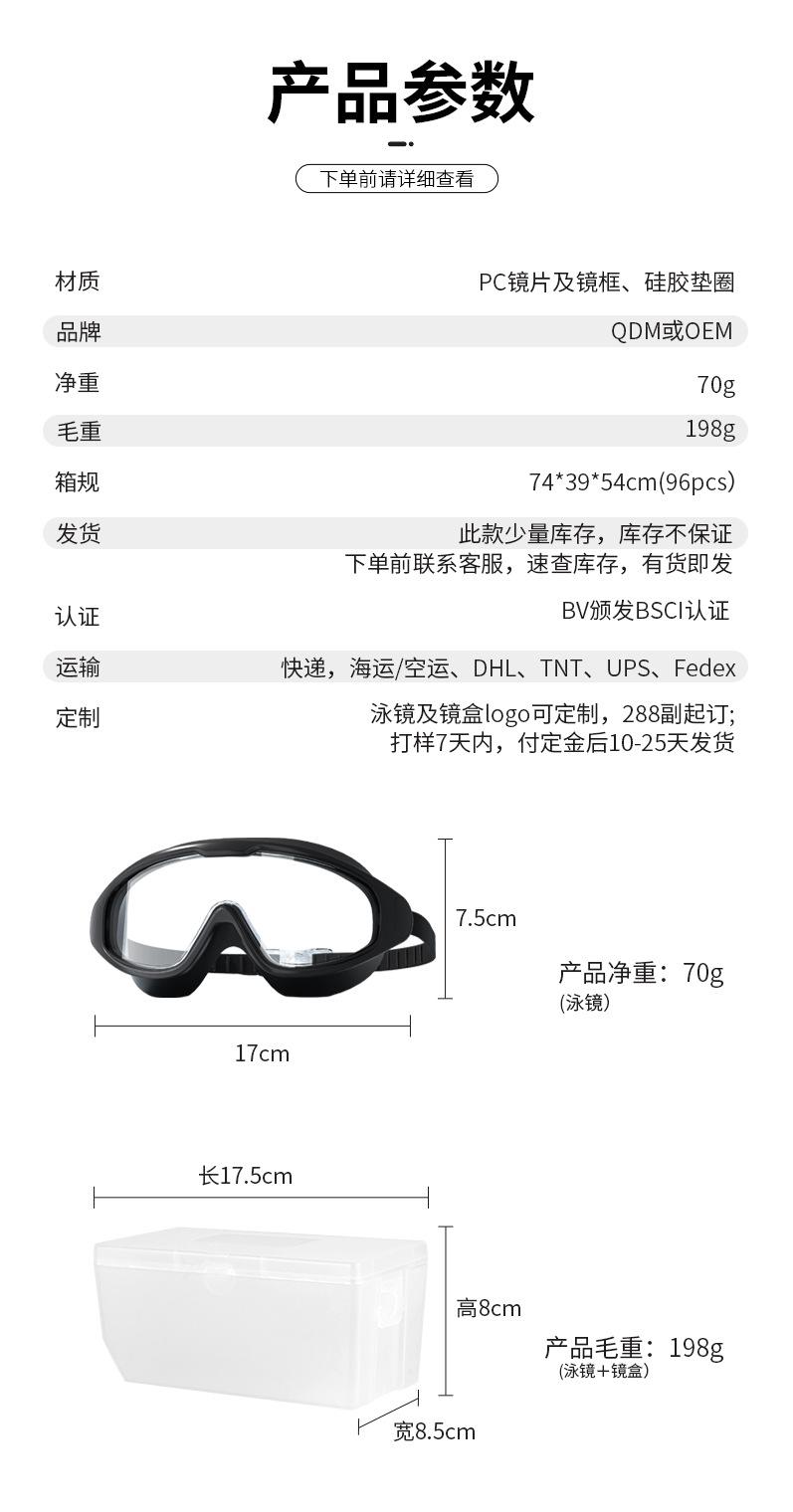 Gafas de natación para adultos de montura grande directamente de fábrica antivaho HD para hombres y mujeres gafas de natación equipo de buceo venta al por mayor de fábrica