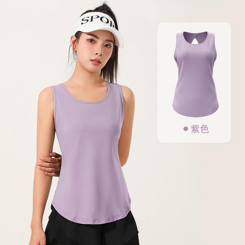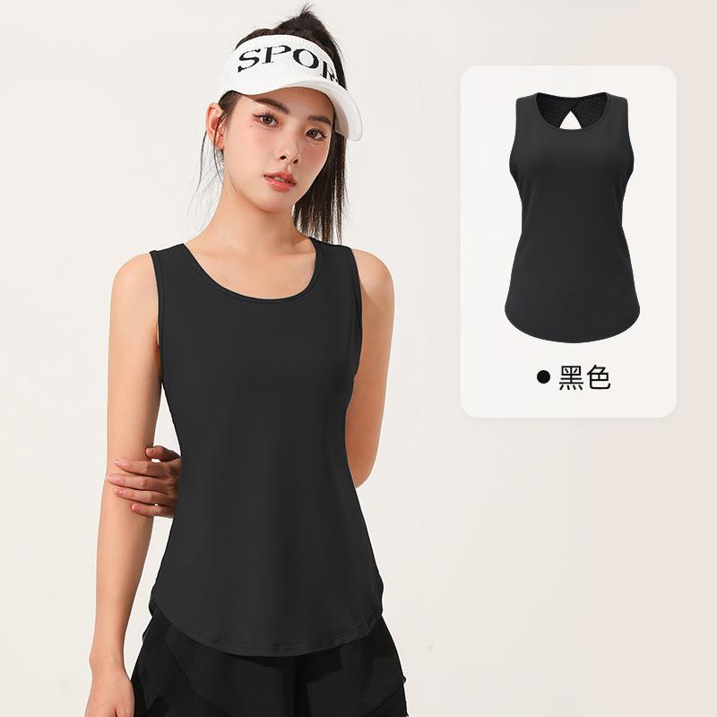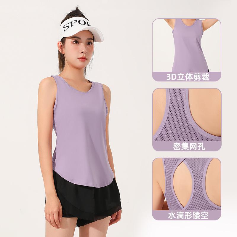 Chaleco deportivo transpirable de secado rápido de comercio exterior, de malla hueca, con espalda descubierta y efecto gota de agua, para yoga, sin mangas y manga corta.