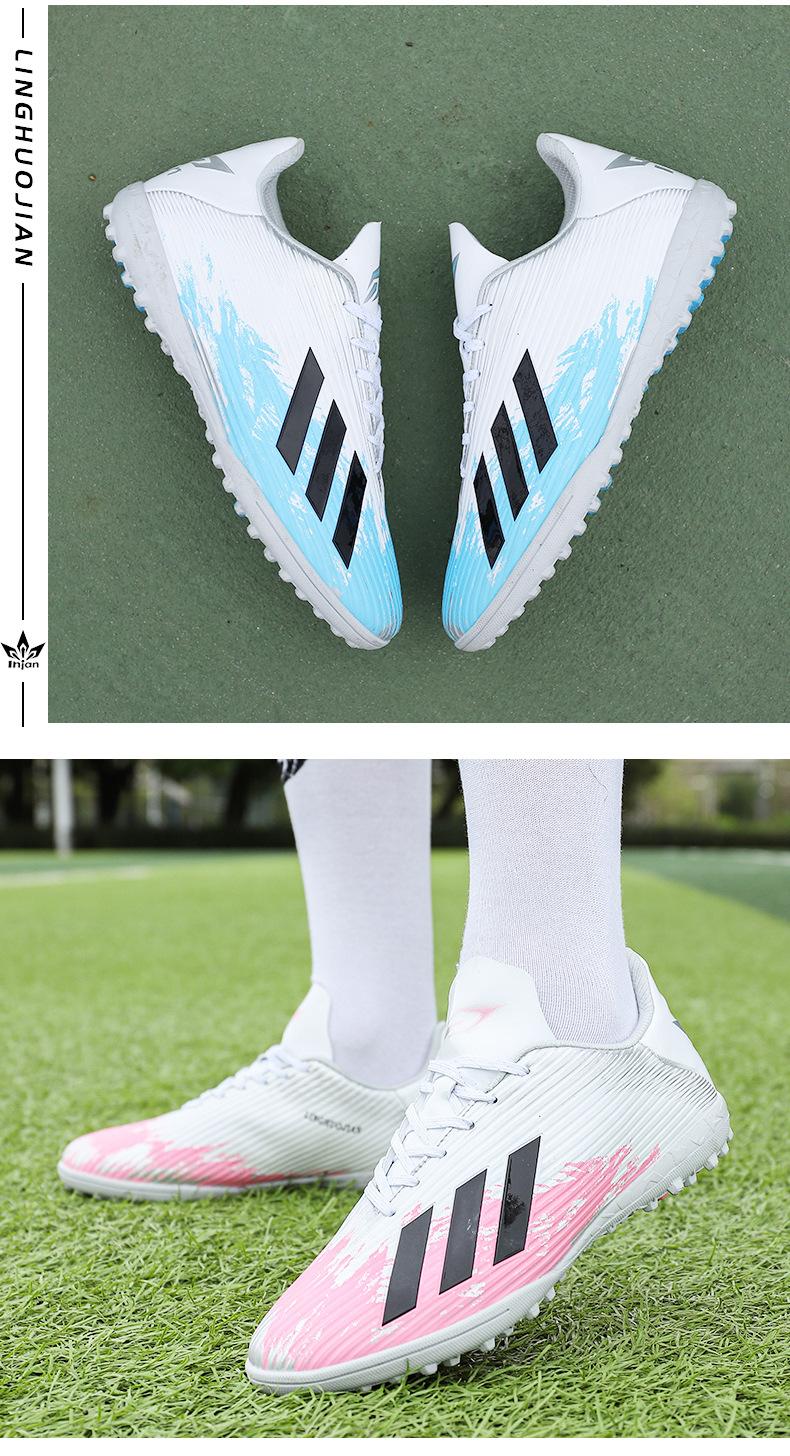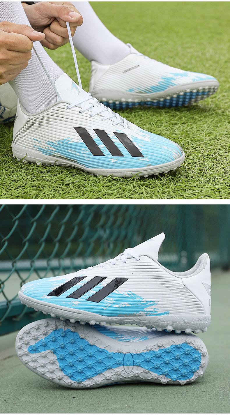 | Nuevas botas de fútbol para niños, para hombres y mujeres, antideslizantes, transpirables, con hebilla giratoria y cordones, para fútbol TF, clavos rotos, botas de fútbol antideslizantes para jóvenes. |