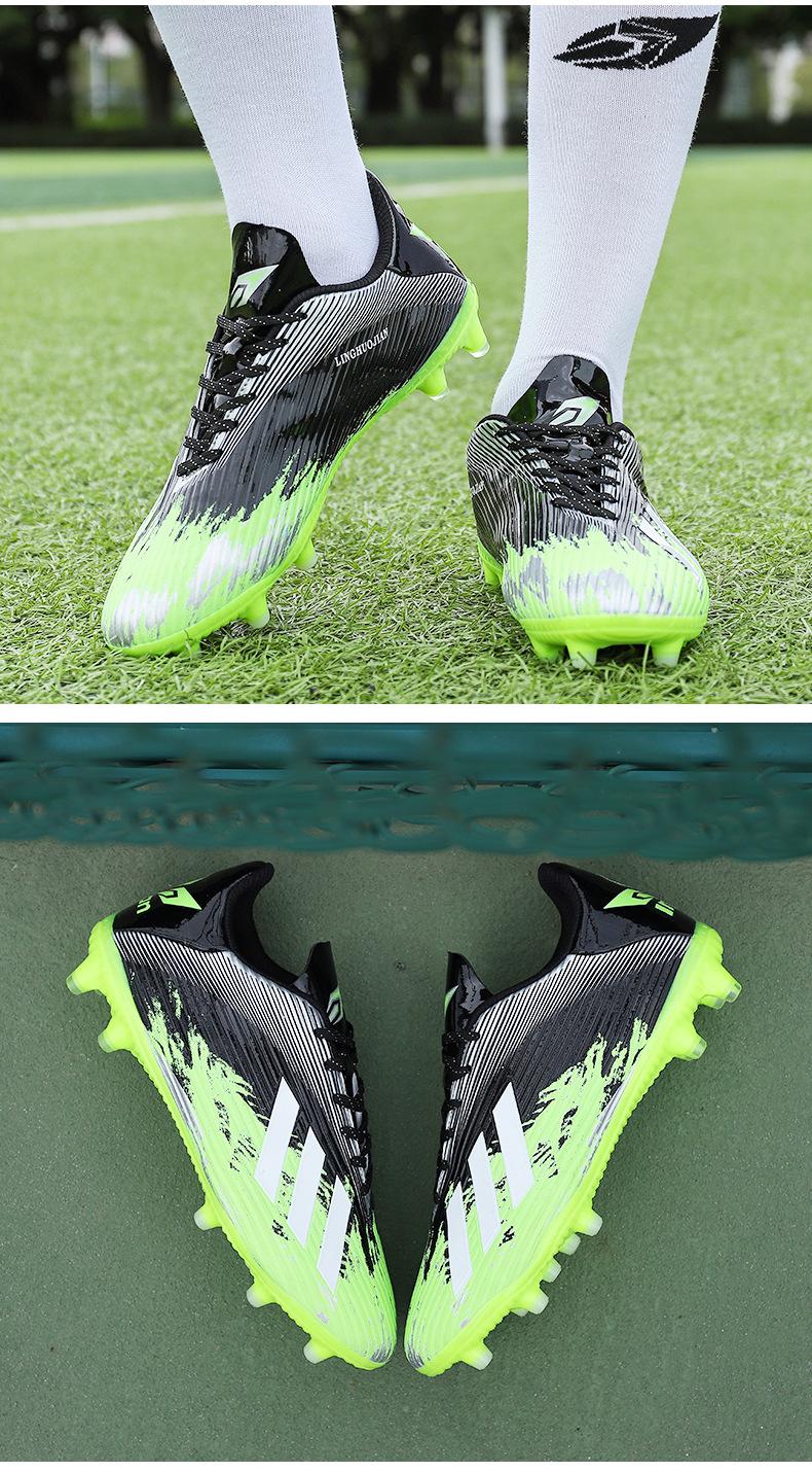 | Botas de fútbol para hombres y mujeres, adolescentes, estudiantes de secundaria, zapatos de entrenamiento y competición AG, clavos largos, césped humano, resistentes a los impactos, zapatos de fútbol resistentes al desgaste |