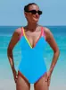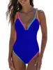 2025 Europa y Estados Unidos comercio exterior transfronterizo nuevo color sólido ajustado sin espalda chica caliente vacaciones sexy traje de baño de una pieza bikini mujeres