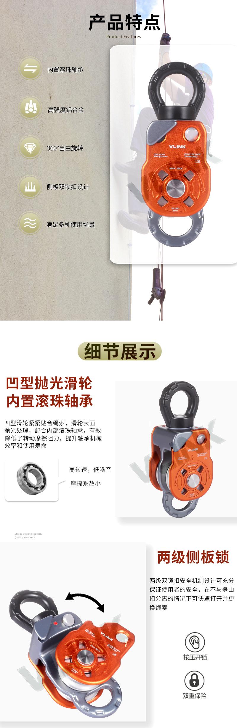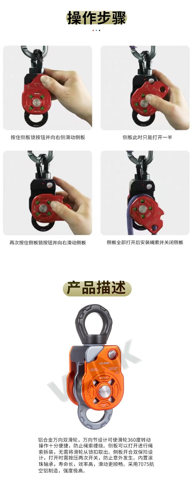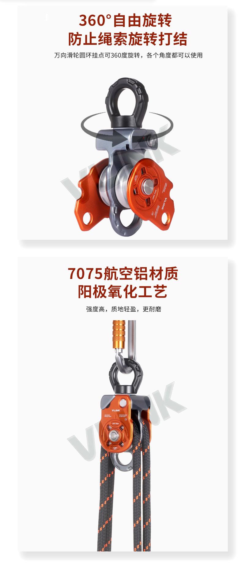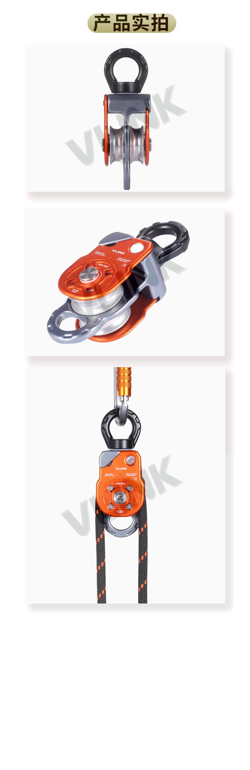Escalada en roca al aire libre polea de escalada aleación de aluminio polea doble universal polea de rescate equipo para levantar objetos pesados