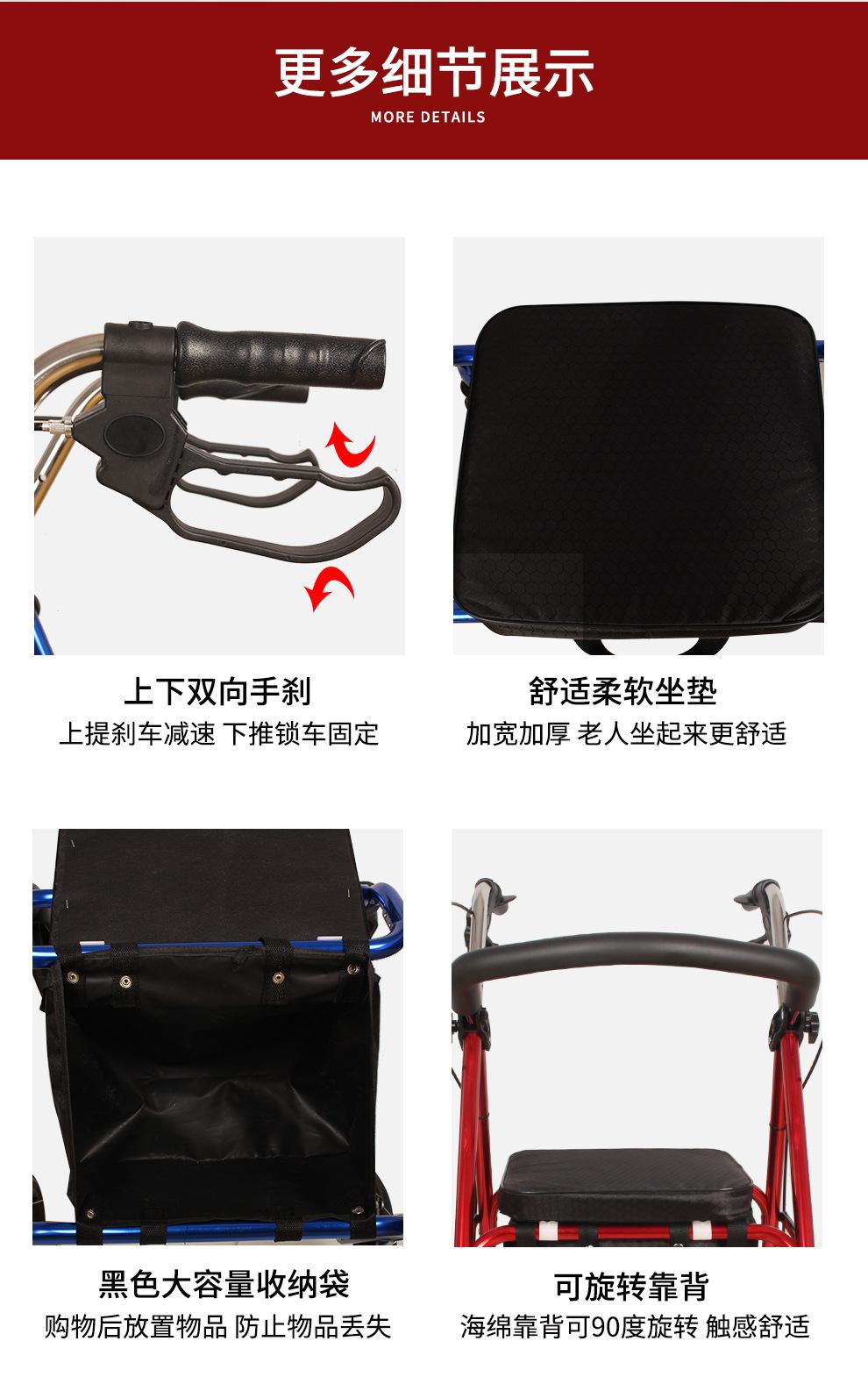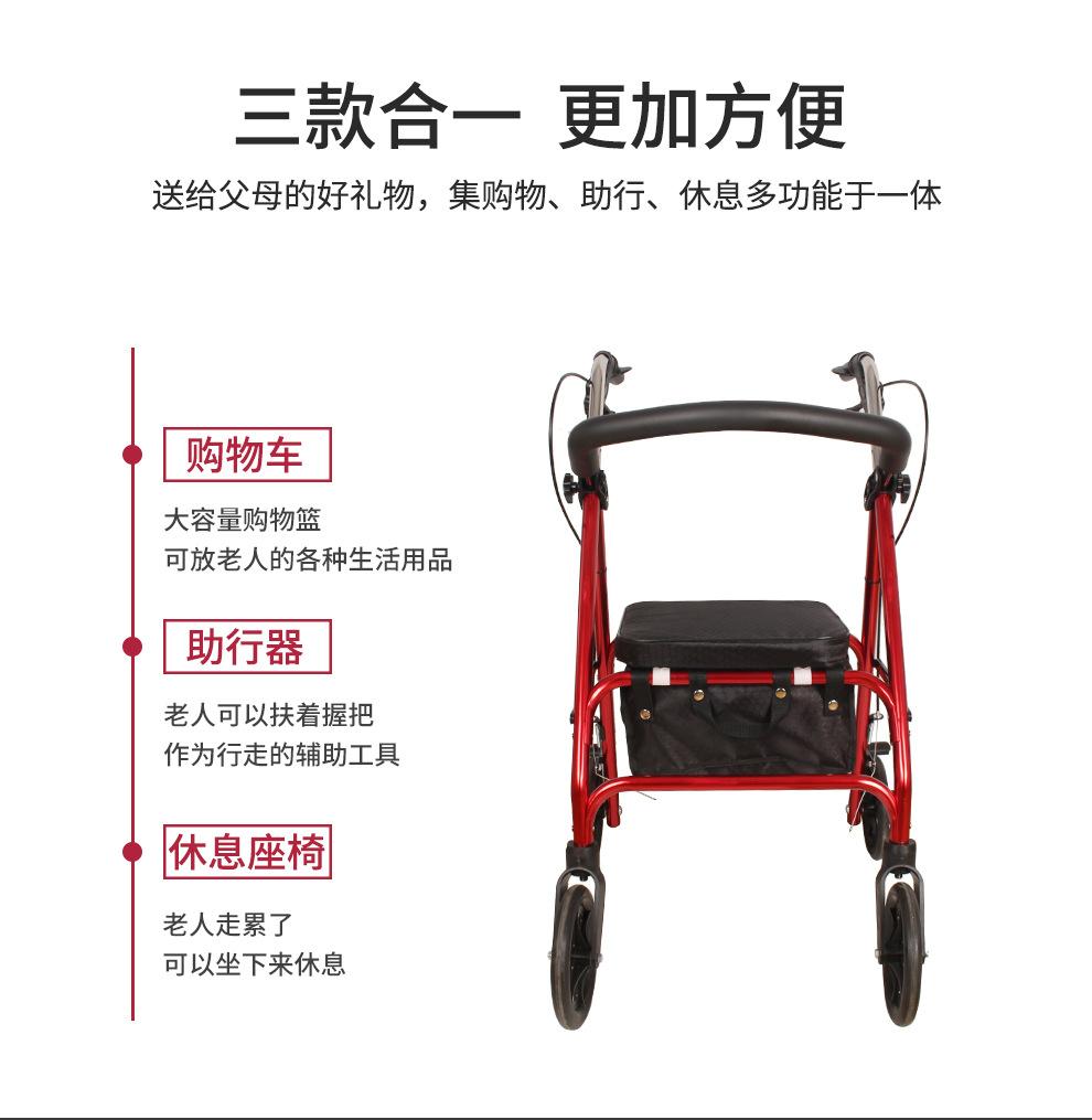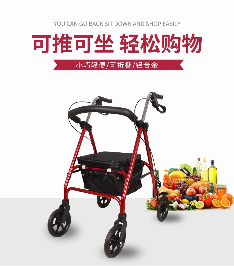 Silla de ruedas Carrito de compras para ancianos con asiento Andador para ancianos de doble propósito Empuje manual para caminar Andador plegable portátil