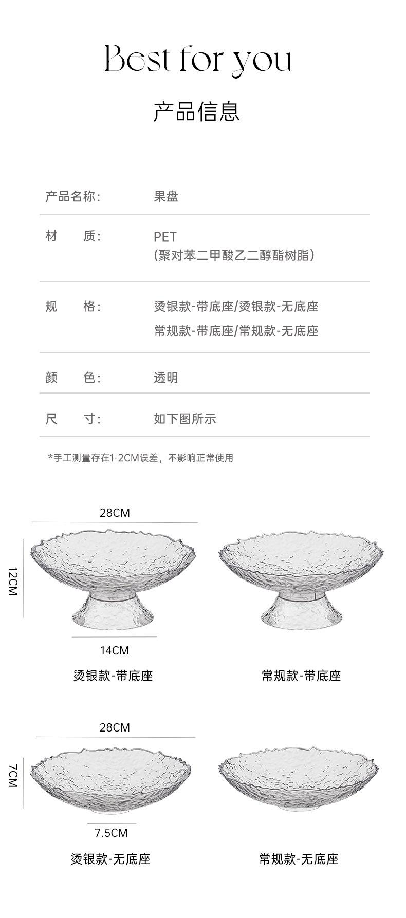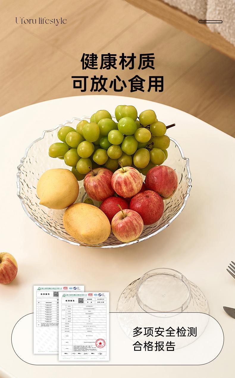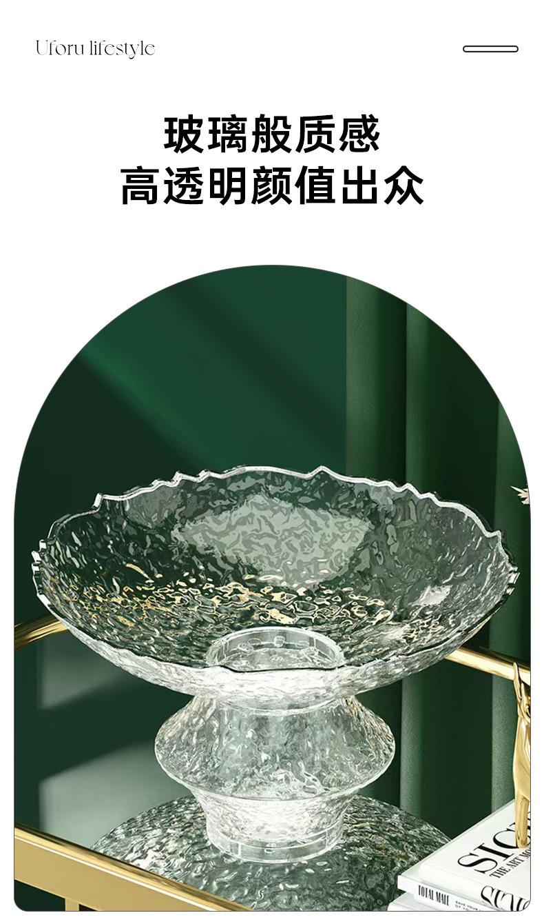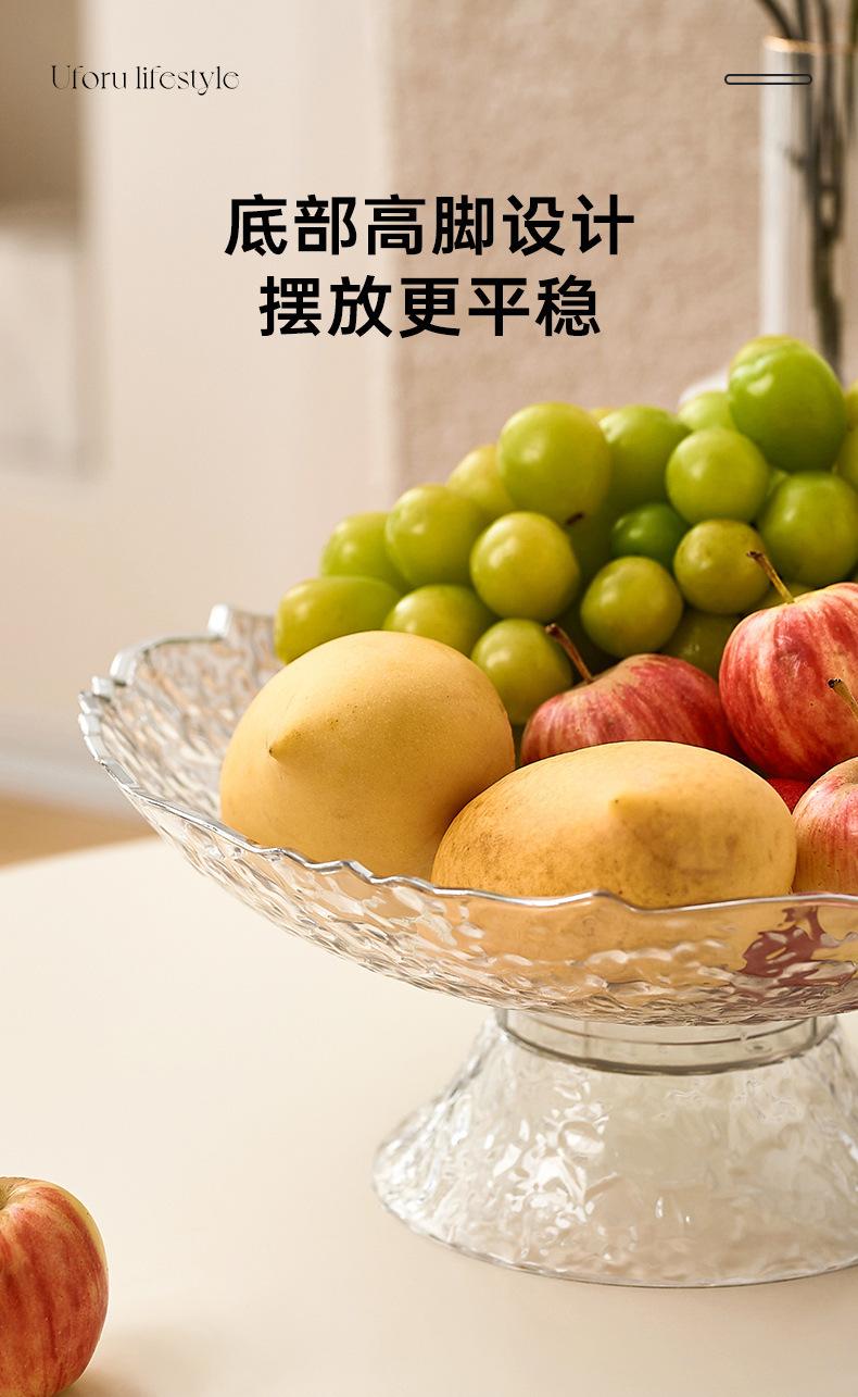Plato de fruta de vidrio de nuevo estilo para el hogar, sala de estar, plato de fruta con drenaje, plato de fruta seca de lujo ligero y transparente de alta calidad, estilo japonés