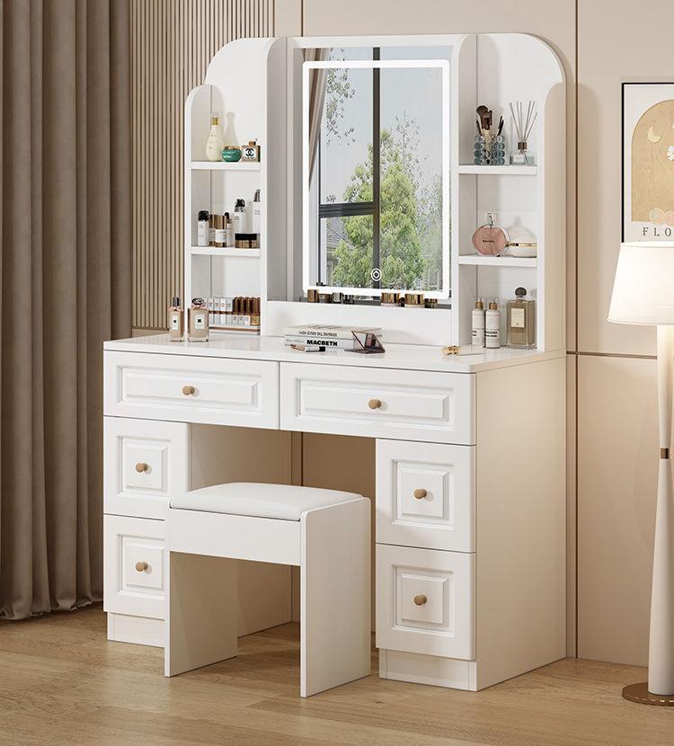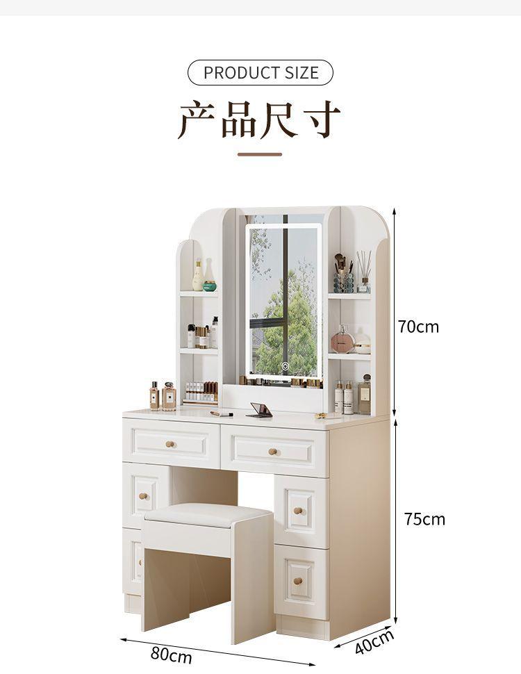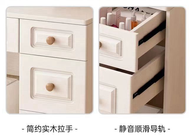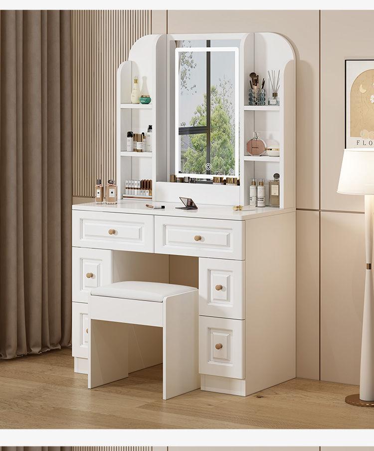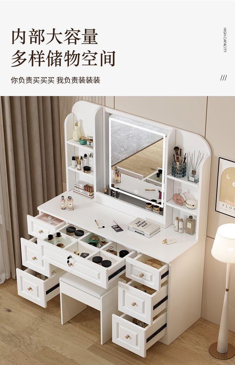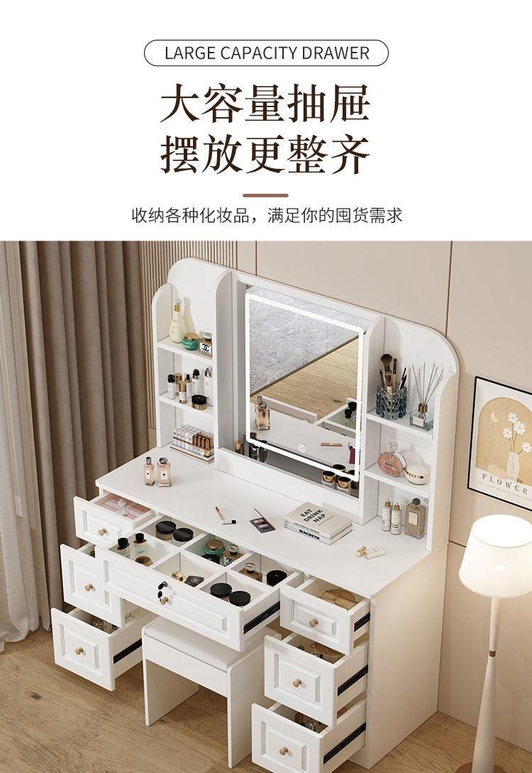 Tocador sencillo y moderno de madera maciza para dormitorio de apartamento pequeño, mesa de maquillaje, tocador ligero de lujo con lámpara, armario de almacenamiento, celebridad de Internet