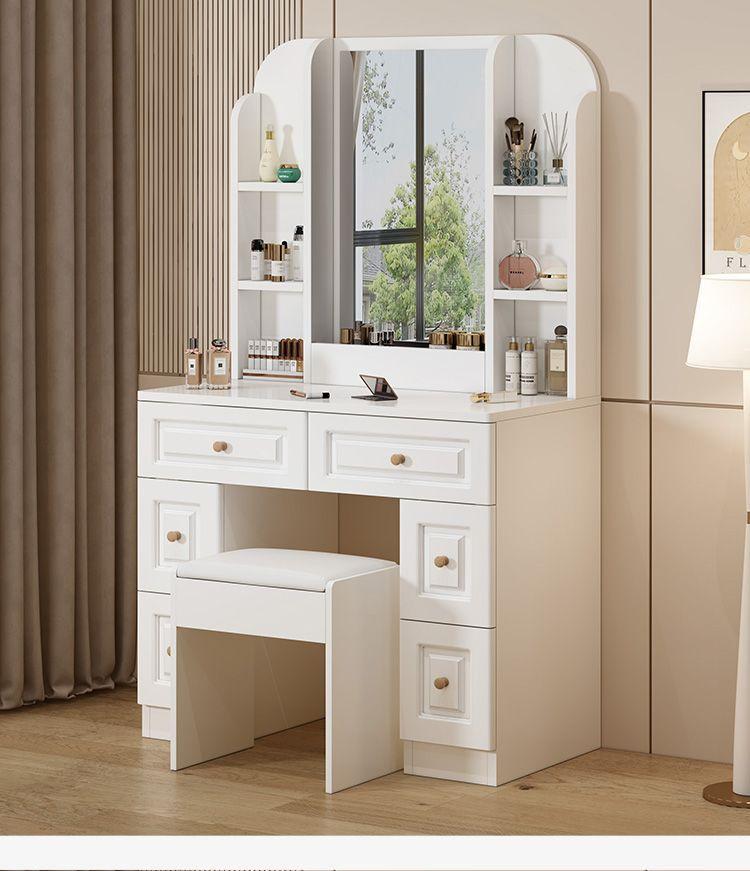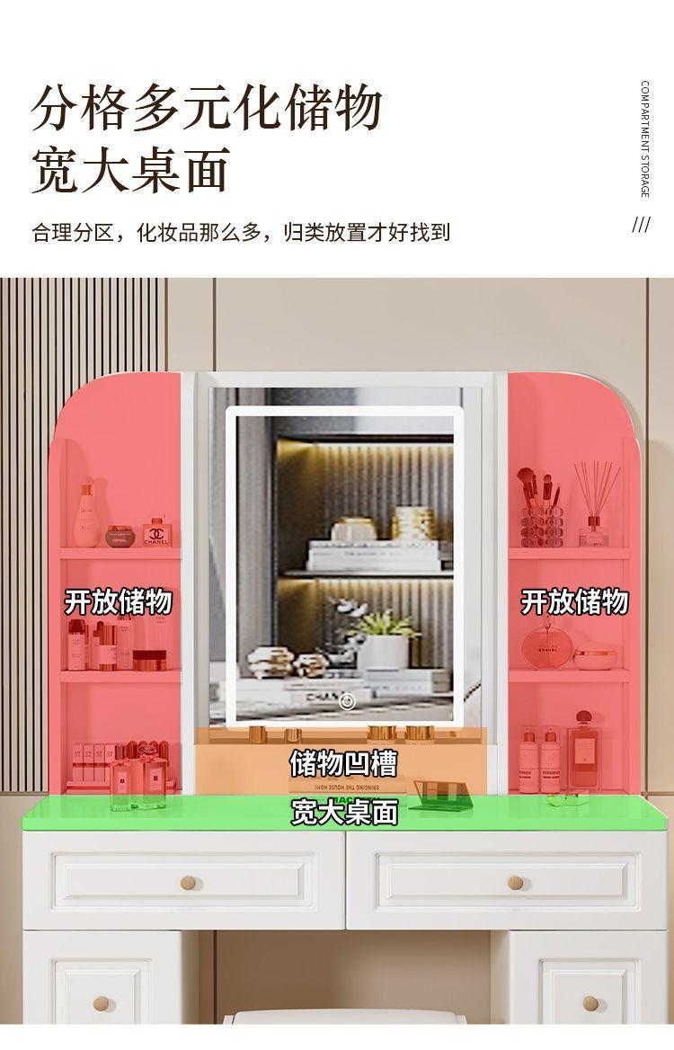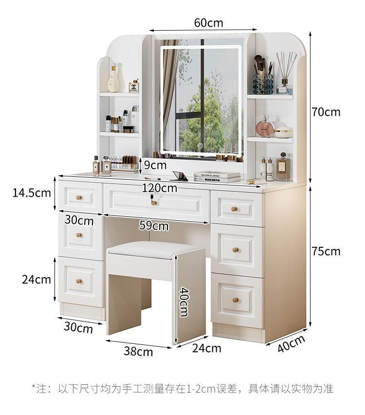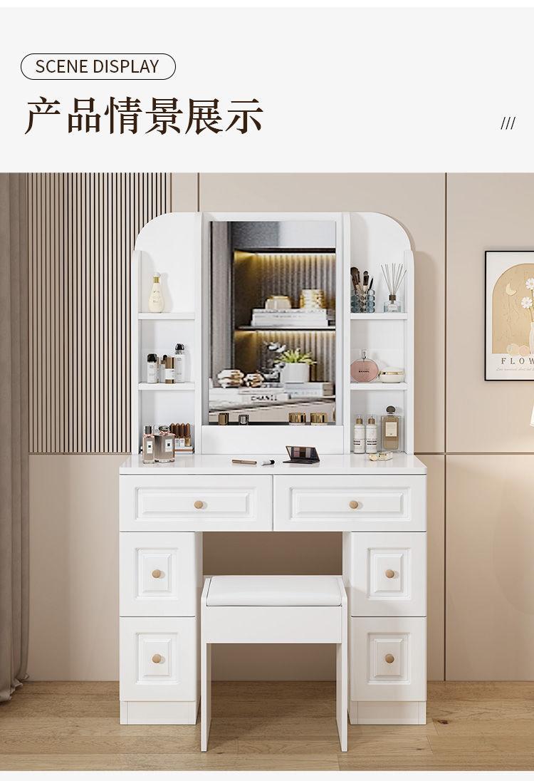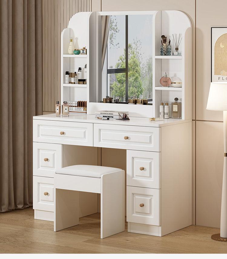 Tocador sencillo y moderno de madera maciza para dormitorio de apartamento pequeño, mesa de maquillaje, tocador ligero de lujo con lámpara, armario de almacenamiento, celebridad de Internet
