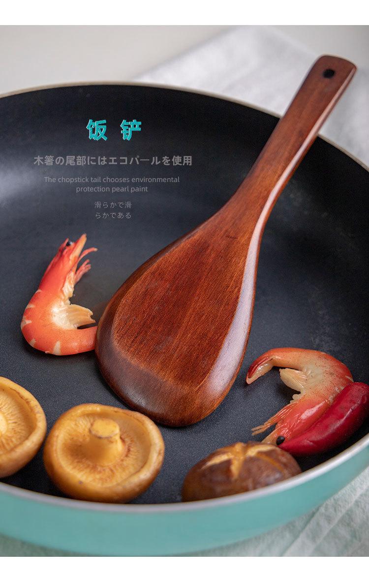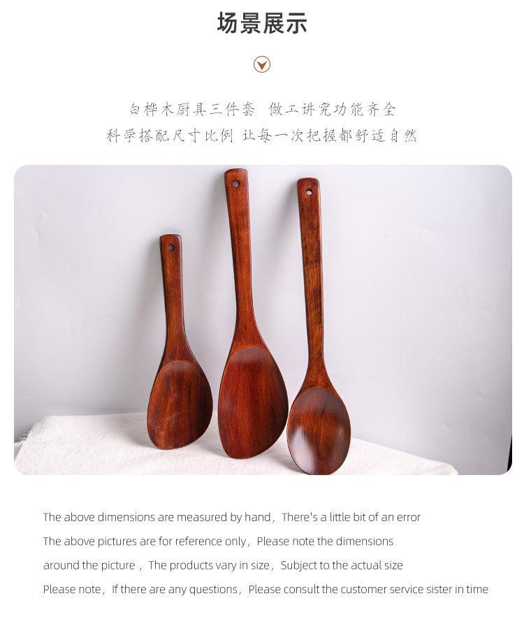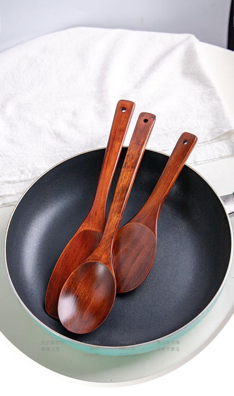 Espátula de madera, sartén antiadherente, espátula de cocina resistente a altas temperaturas, espátula de madera de mango largo, juego de cucharas para sopa, suministros de cocina para el hogar