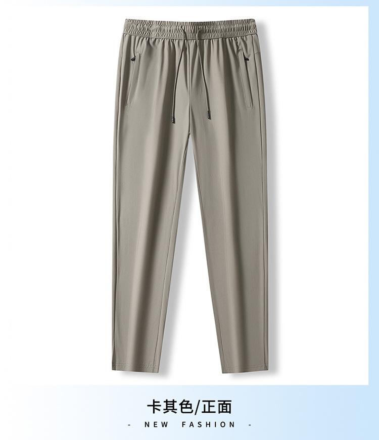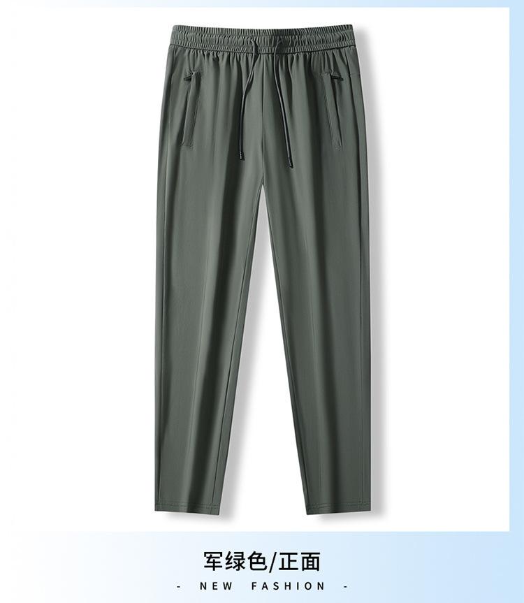 Pantalones casuales de seda de hielo de verano para hombre, pantalones deportivos rectos, sueltos, elásticos, finos, de secado rápido, transpirables, de verano.