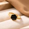 Anillo abierto de calcedonia simple con personalidad de alta gama para mujer, con jade Hotan hexagonal, plata S925 y baño de oro.