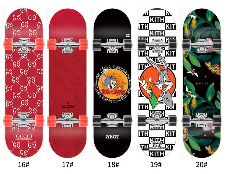 Marca de moda patineta comercio exterior entrega de una pieza profesional cuatro ruedas madera de arce adolescentes niños adulto doble balancín en stock venta al por mayor