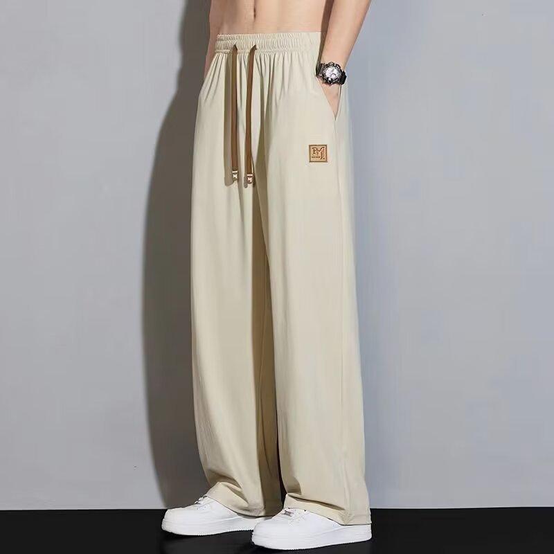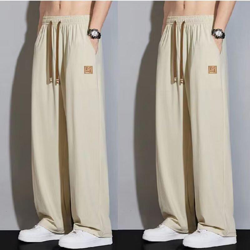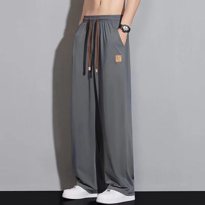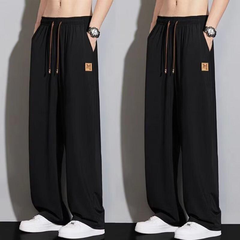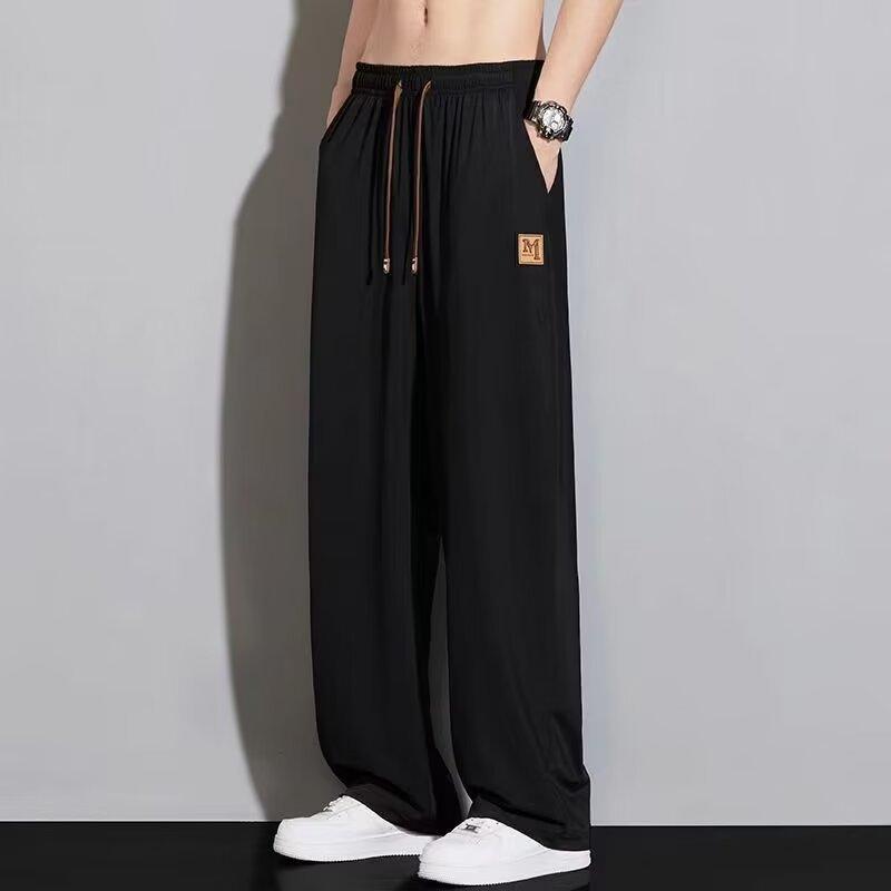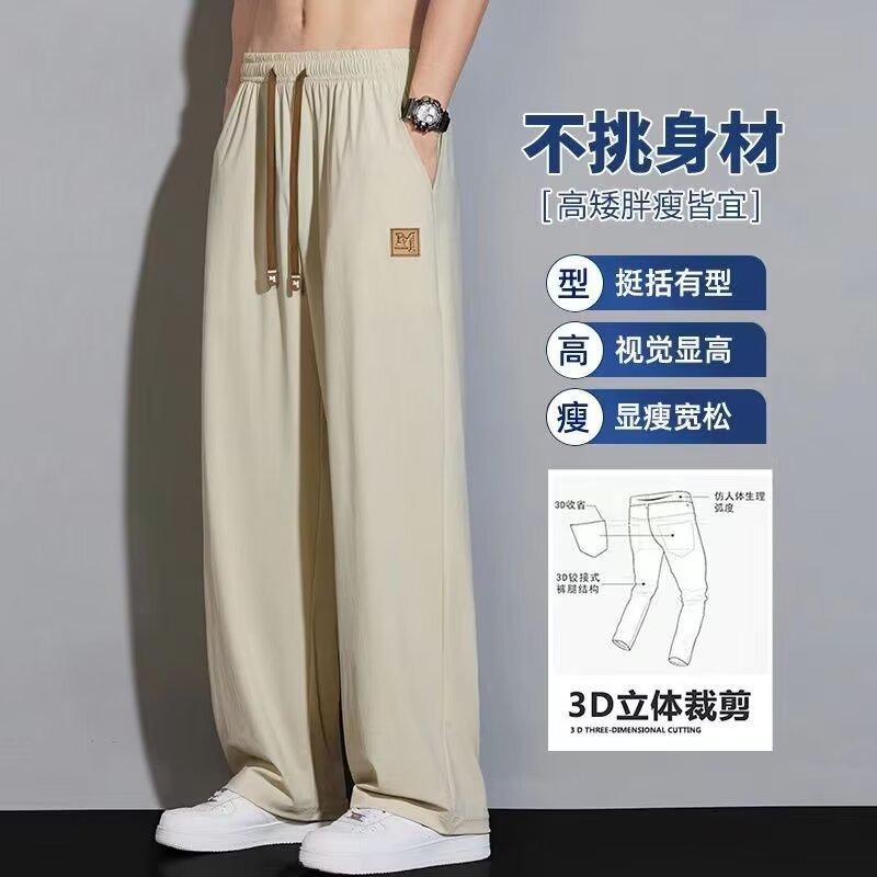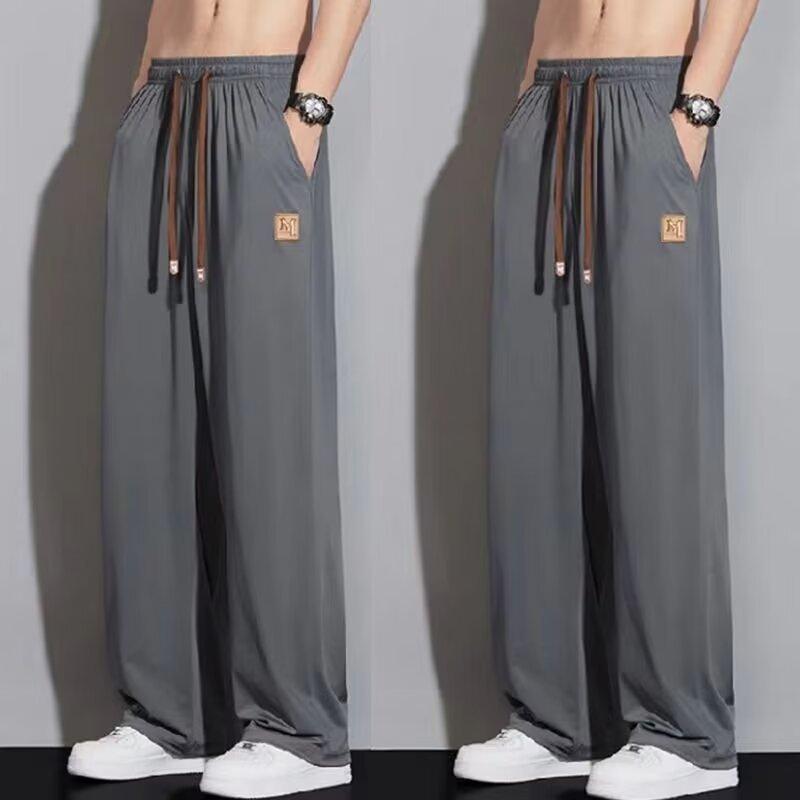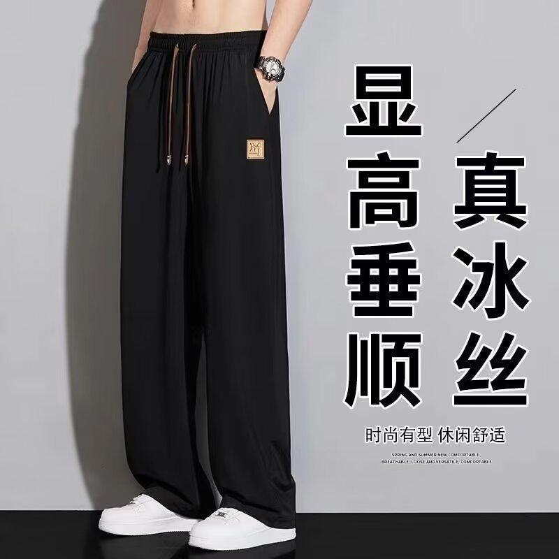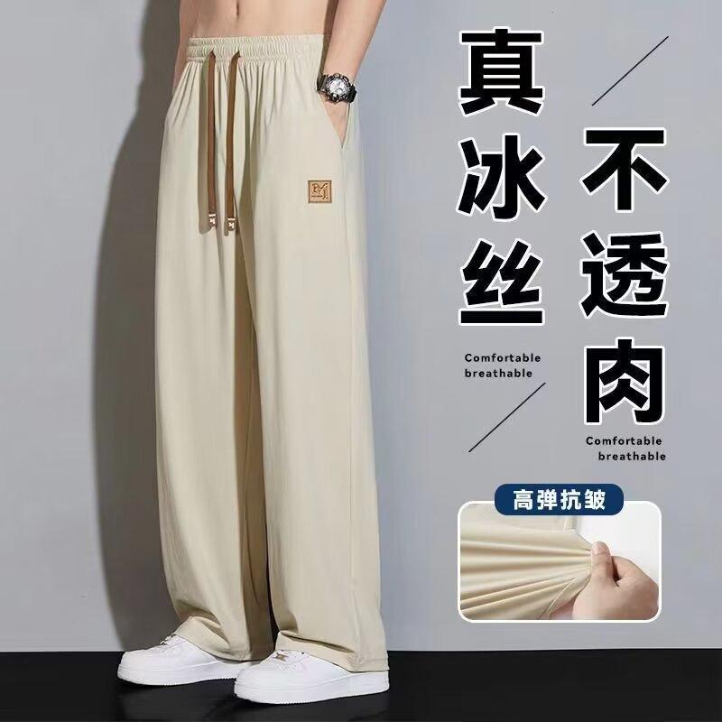 Pantalones Rectos de Seda de Hielo para Hombre 2024 Nuevo Verano Secado Rápido Sueltos de Pierna Ancha Pantalones Deportivos Casuales para Niño
