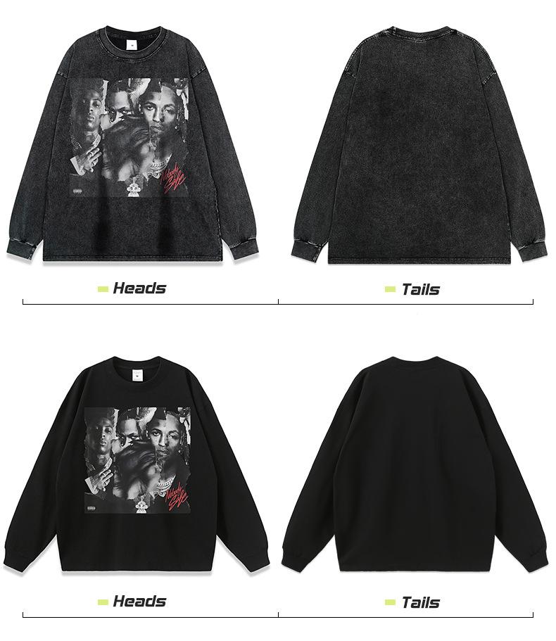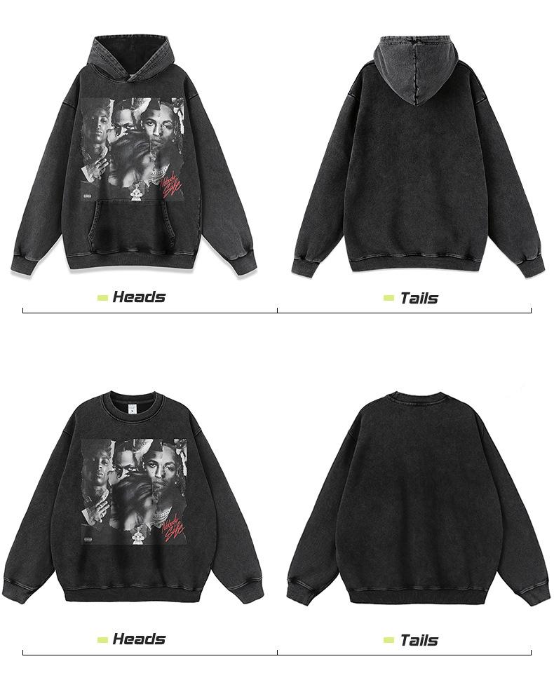Suéter nuevo de otoño e invierno para hombre, estilo americano, moda urbana, marca estampada, algodón lavado pesado, holgado, retro, manga larga, sudadera con capucha