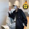 Chaqueta con solapa y cremallera a juego de colores para hombre, marca de moda urbana, primavera y otoño, holgada, casual, lona, ropa de trabajo, chaqueta de mezclilla