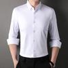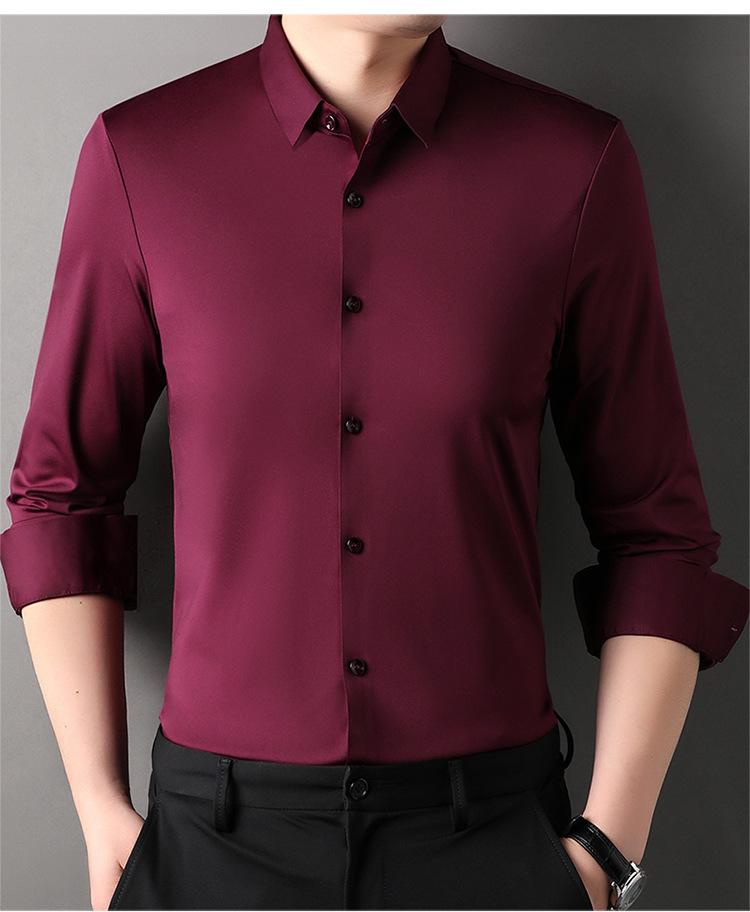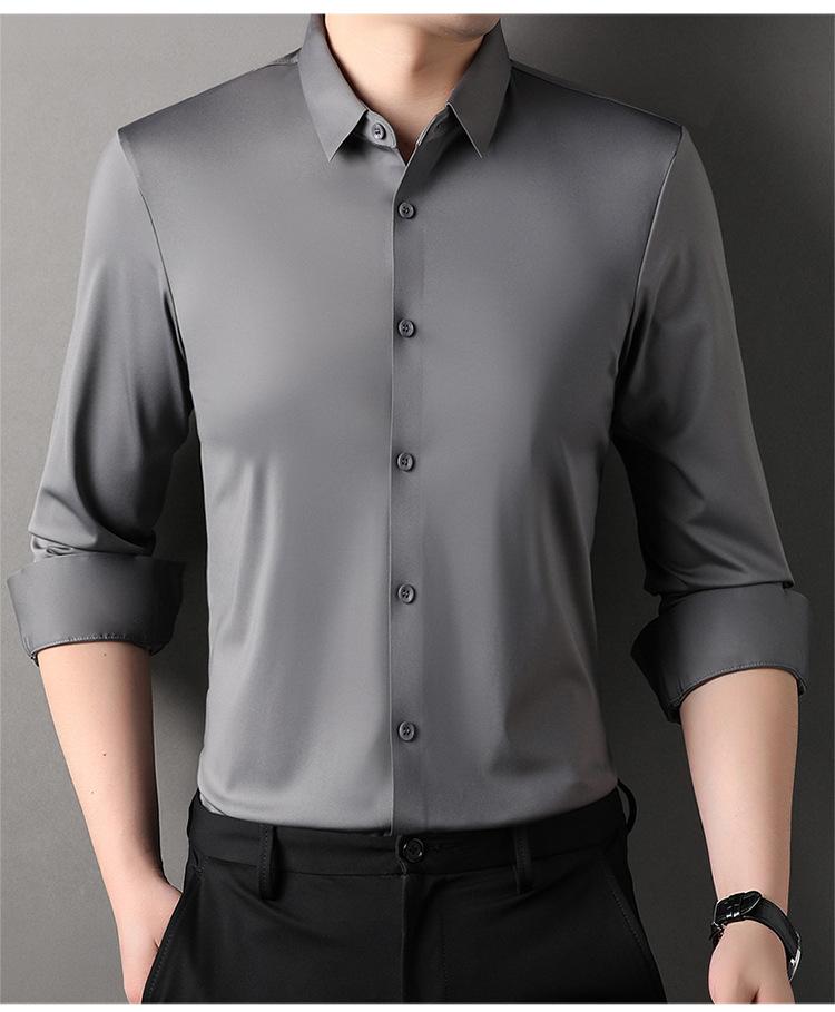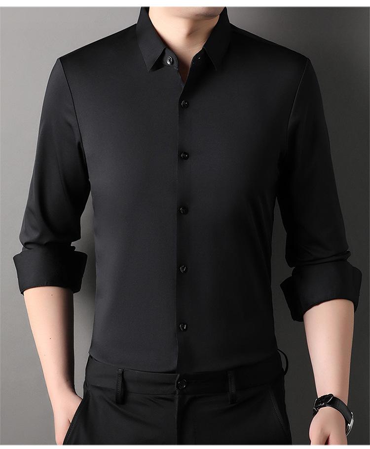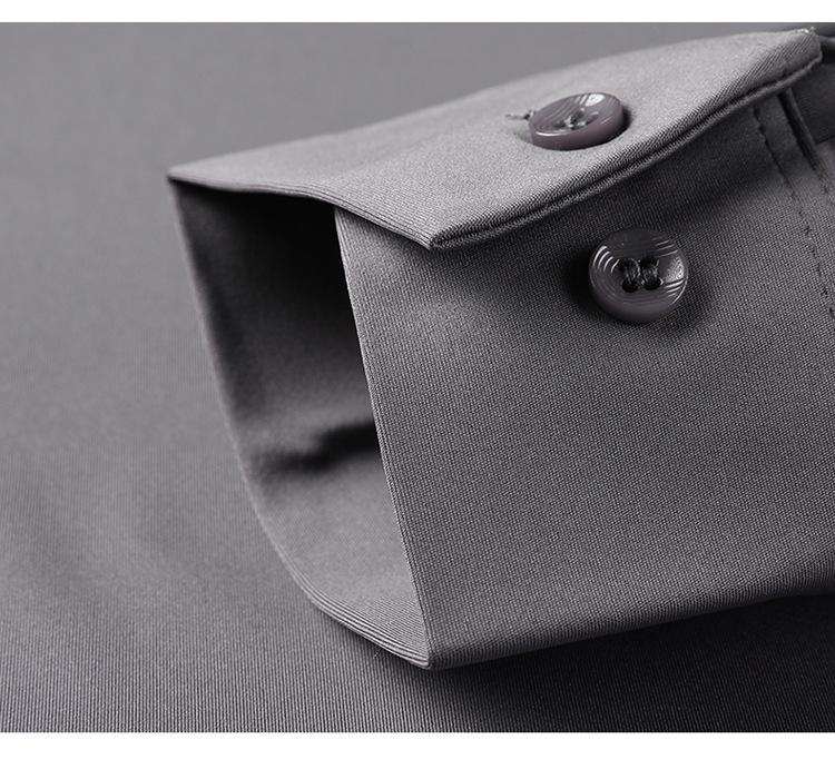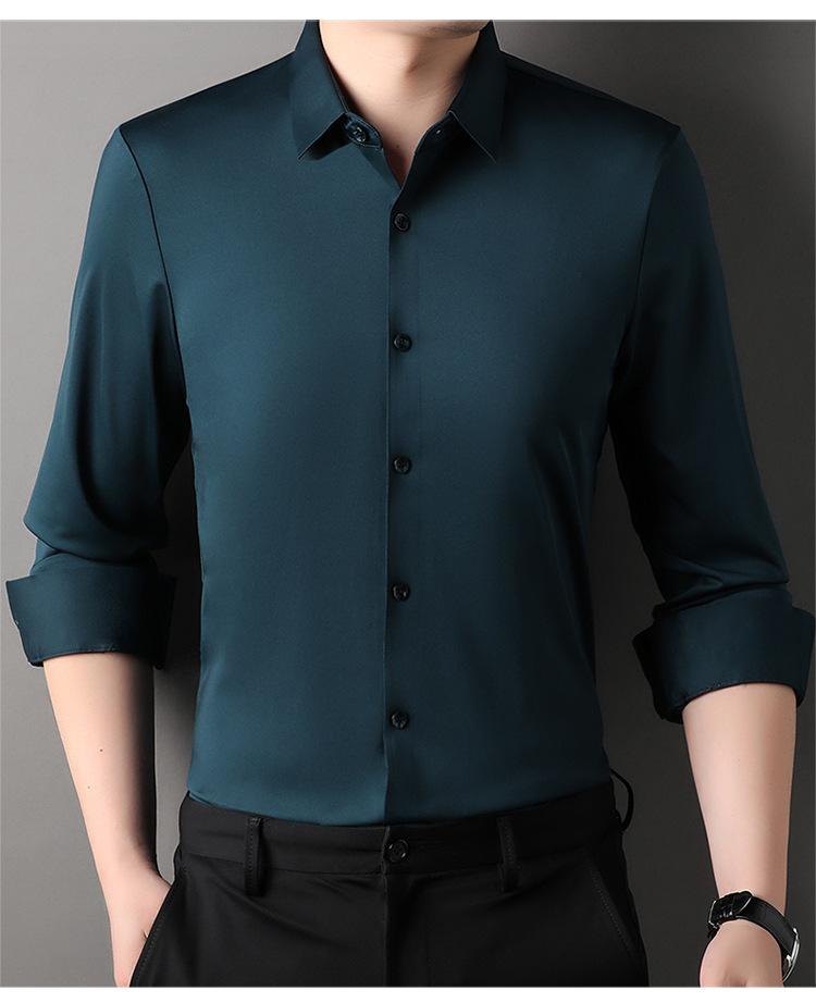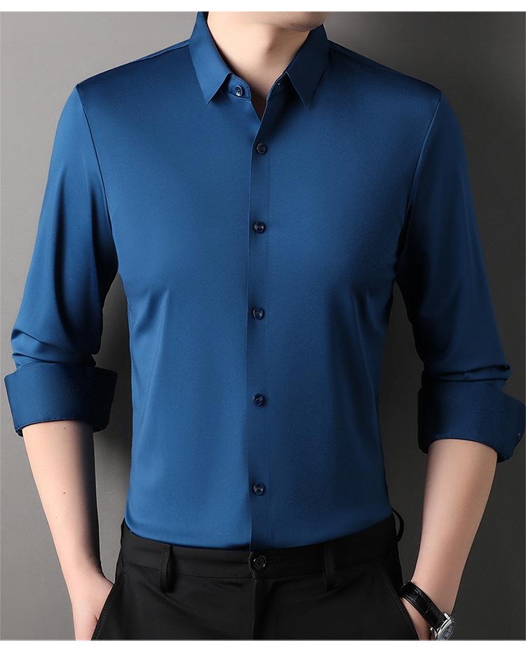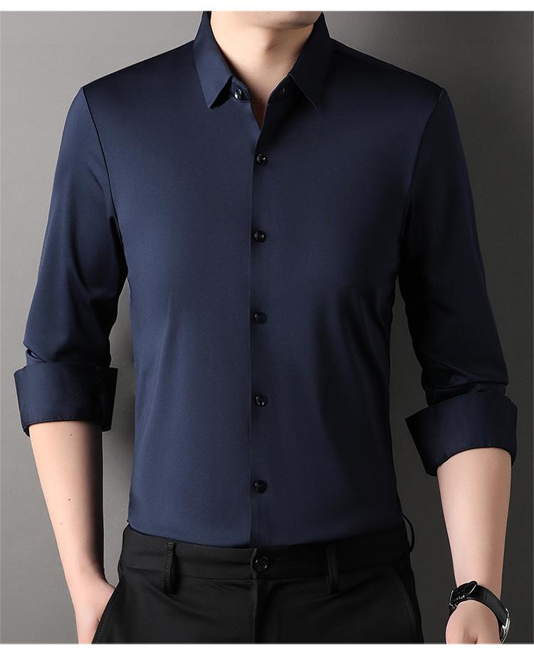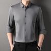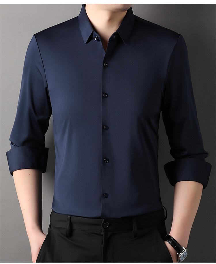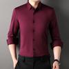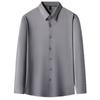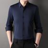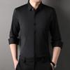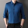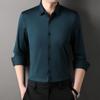 Camisa de manga larga sin rastro para hombre, ropa informal de negocios para papá de mediana edad, primavera y otoño, color sólido, sin planchado, camisa elástica antiarrugas