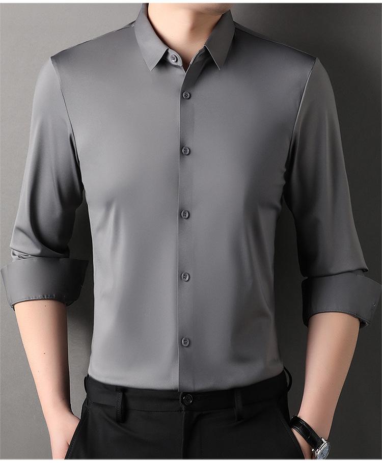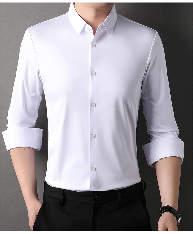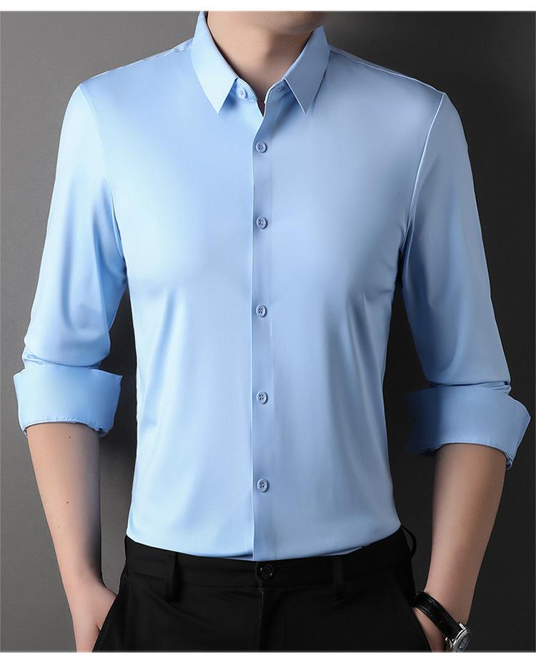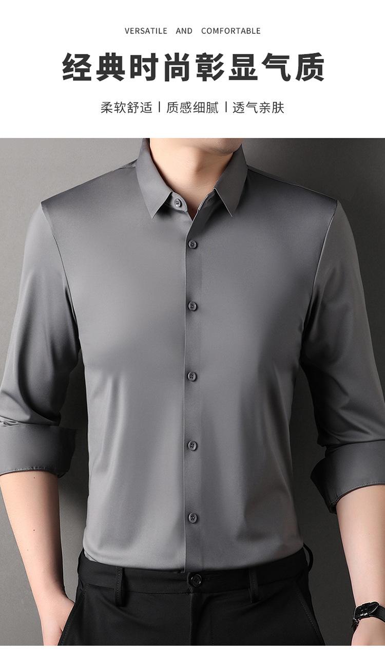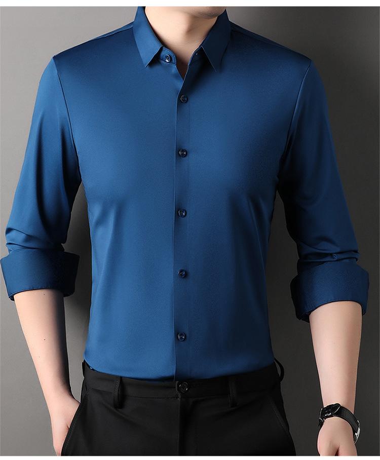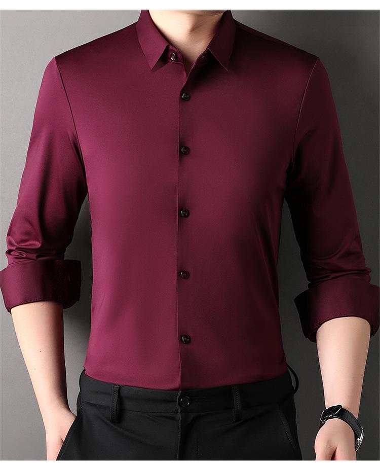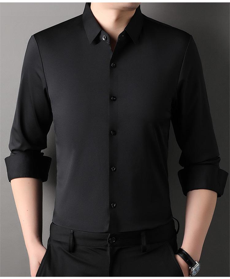 Camisa de manga larga sin rastro para hombre, ropa informal de negocios para papá de mediana edad, primavera y otoño, color sólido, sin planchado, camisa elástica antiarrugas