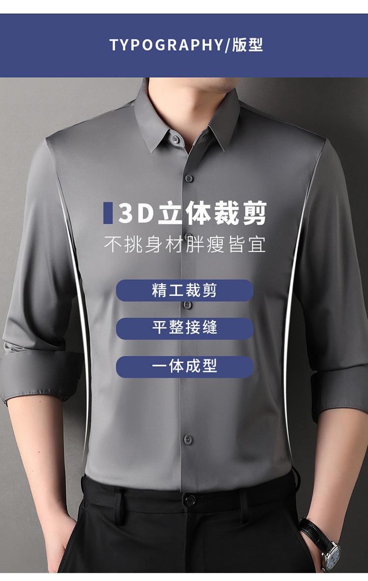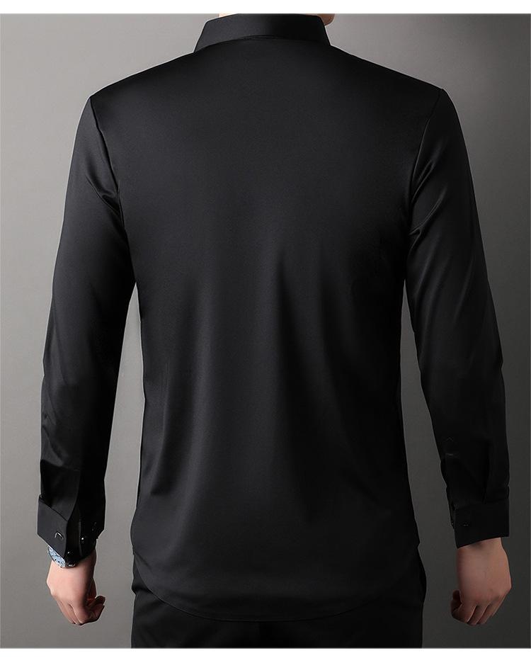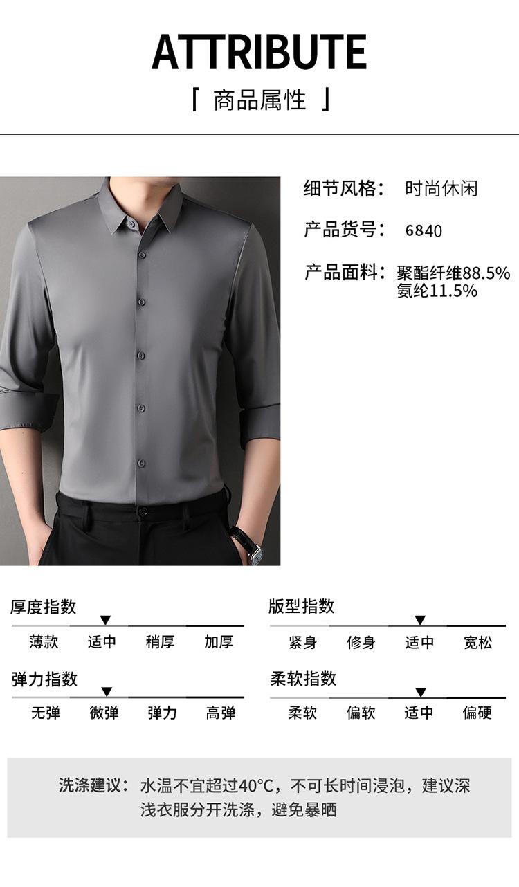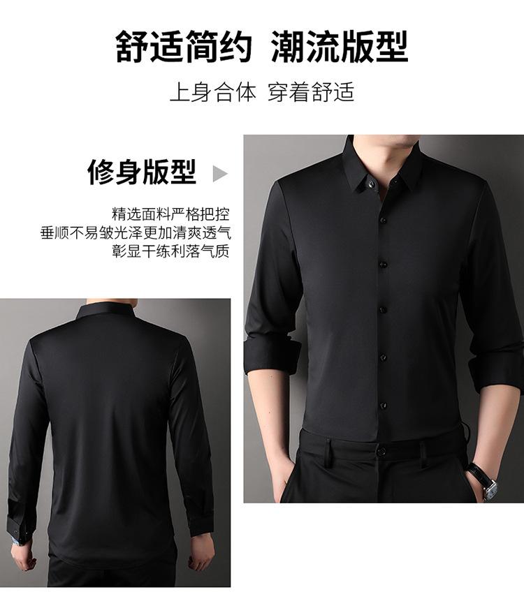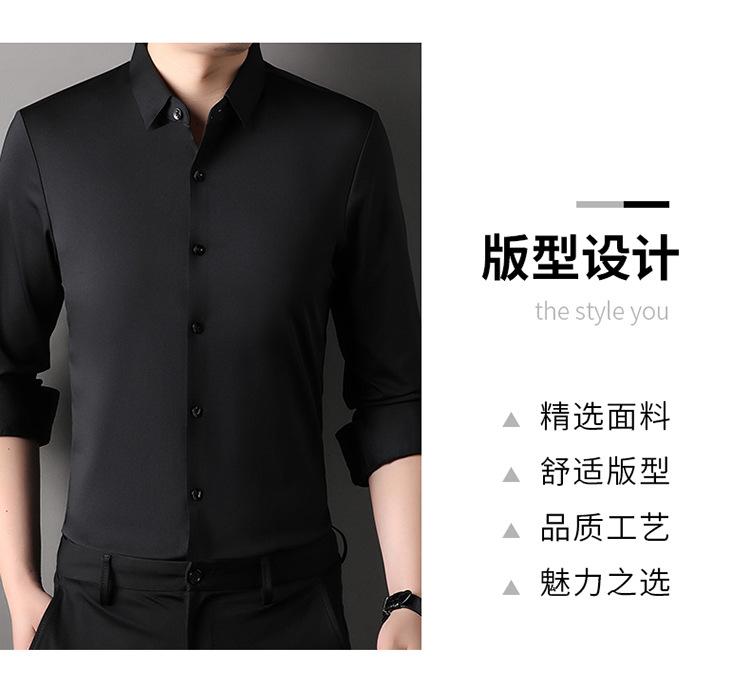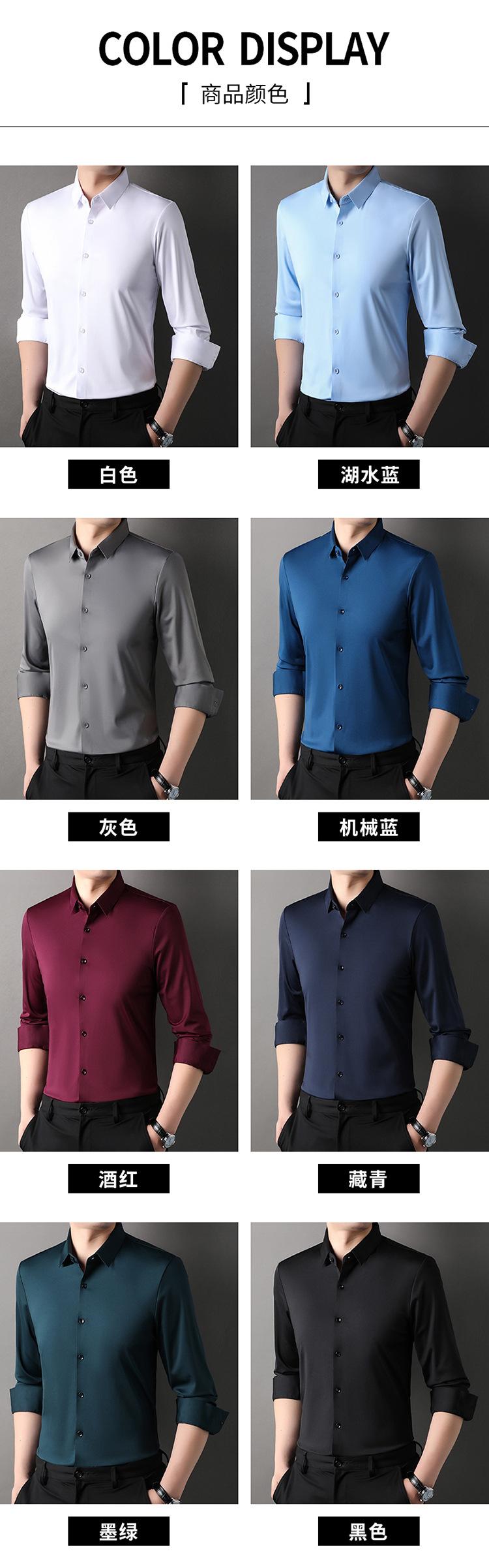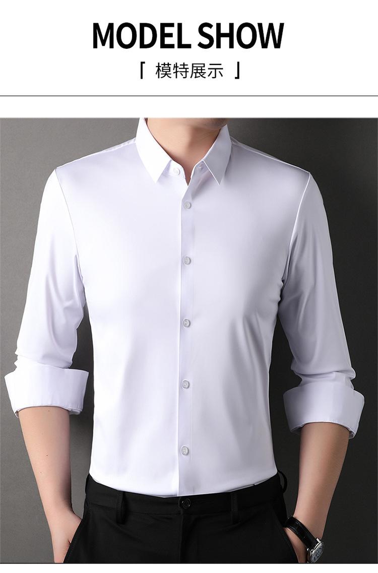 Camisa de manga larga sin rastro para hombre, ropa informal de negocios para papá de mediana edad, primavera y otoño, color sólido, sin planchado, camisa elástica antiarrugas