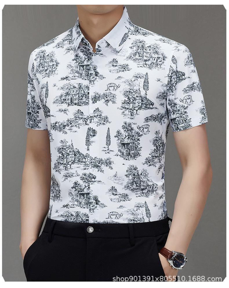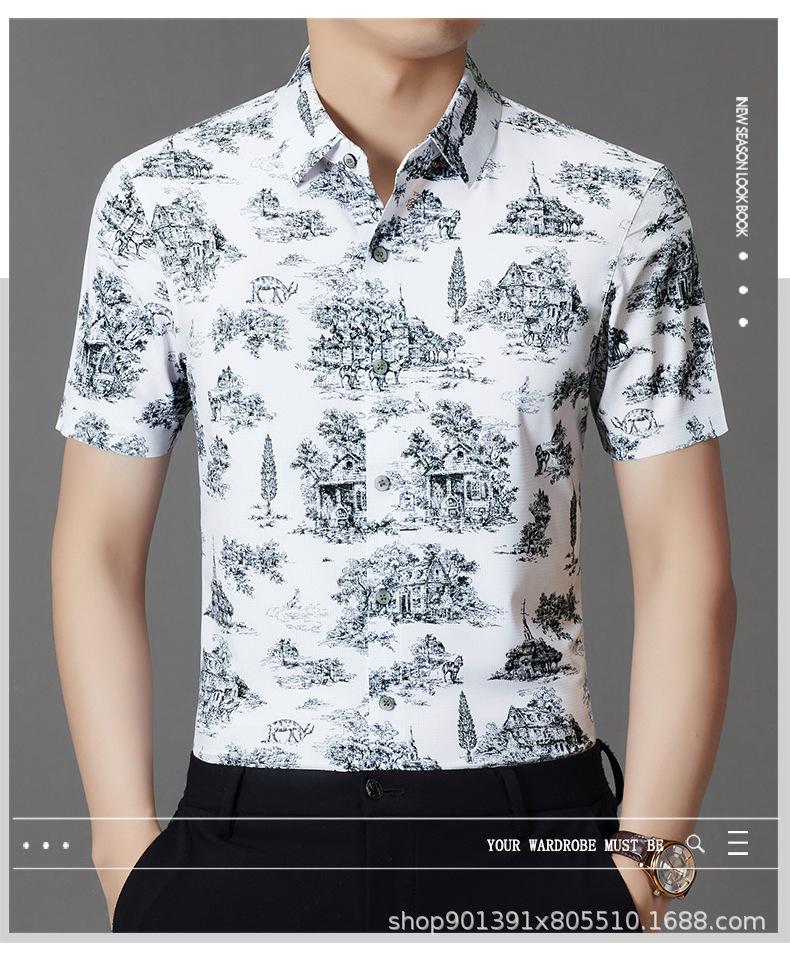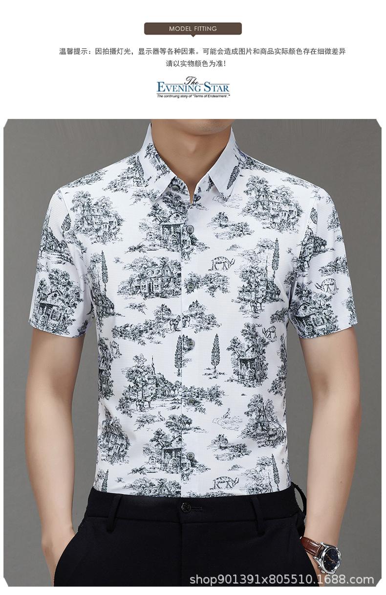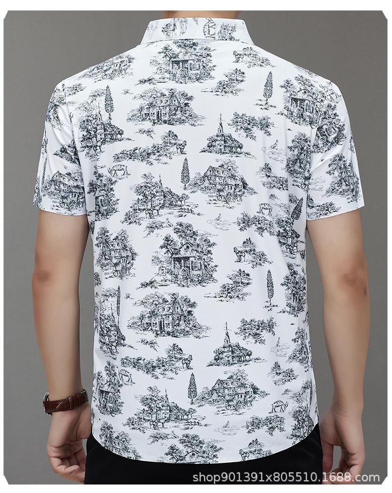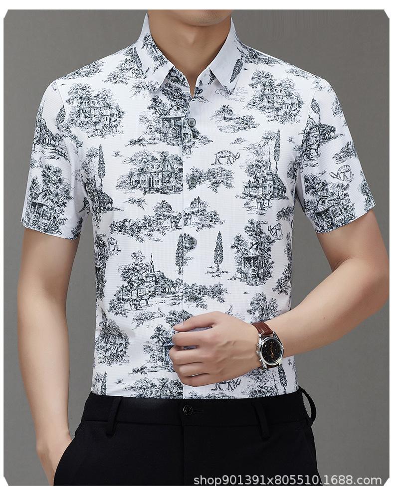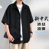 Camisa de manga corta para hombre 25 años nueva tendencia china sin costuras sensación de hielo sin planchado camisa estilo nacional camisa de alta elasticidad camisa de manga corta para hombre