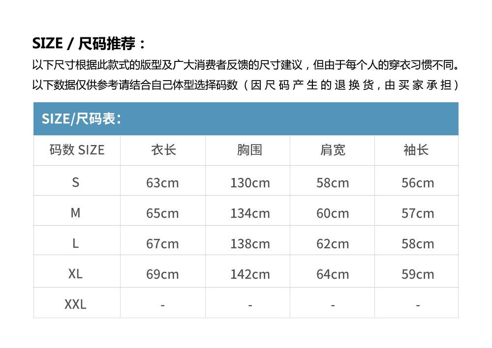 S, M, L, XL