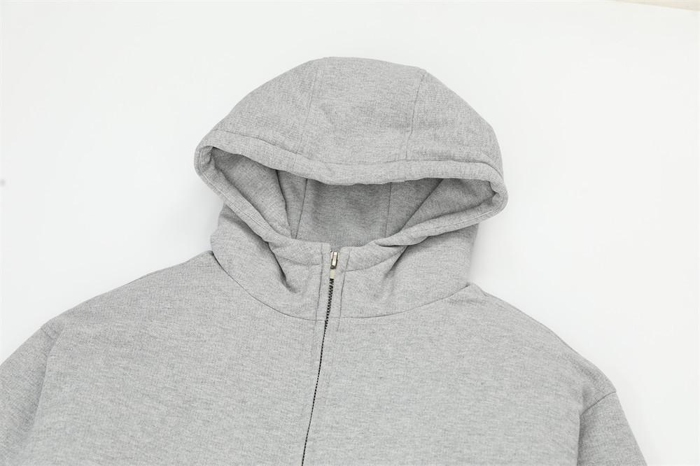 Suéter con Capucha de Color Sólido Americano para Hombre Otoño Suelto Moda Urbana Marca Cálido Grueso Sudadera con Capucha Chaqueta con Cremallera