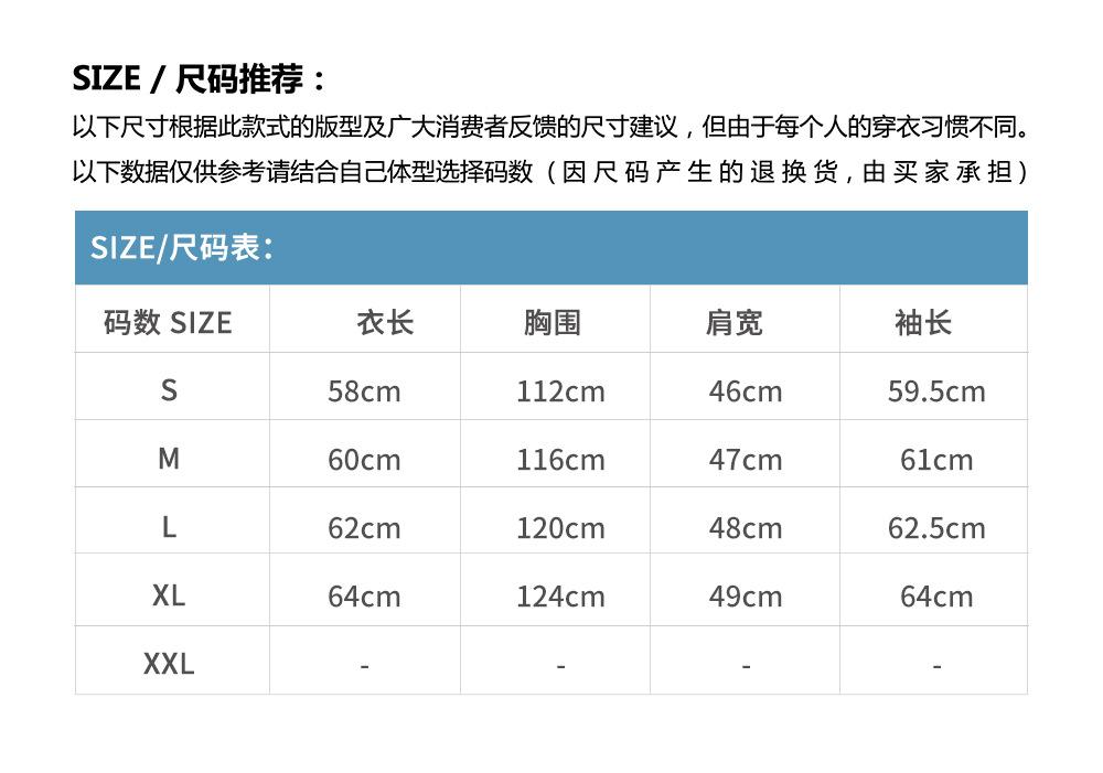 S, M, L, XL