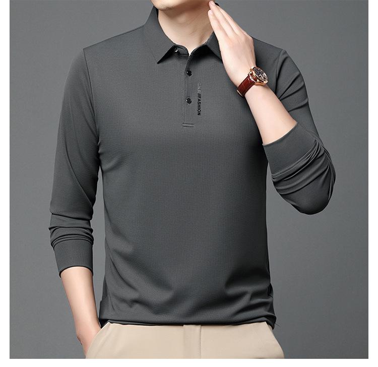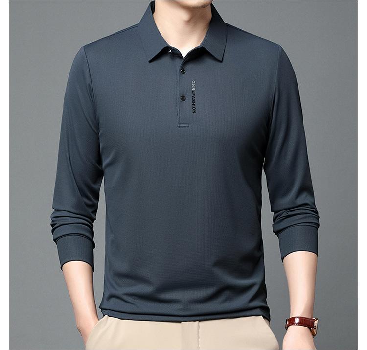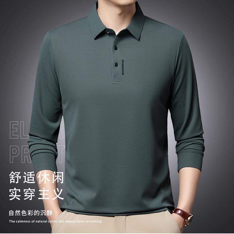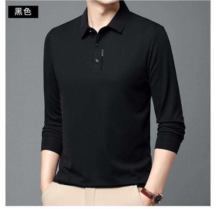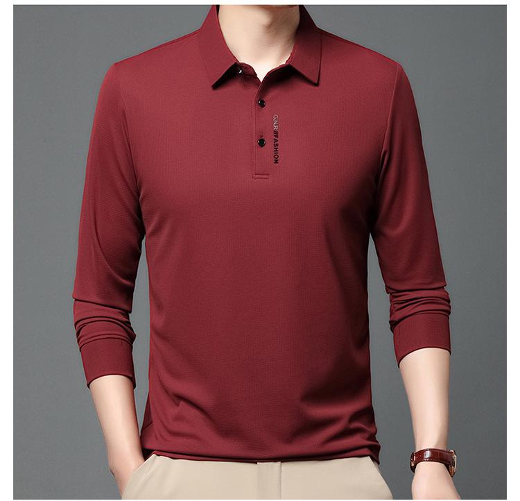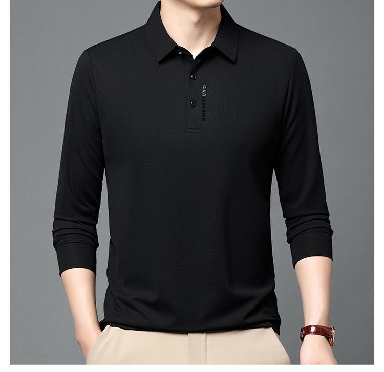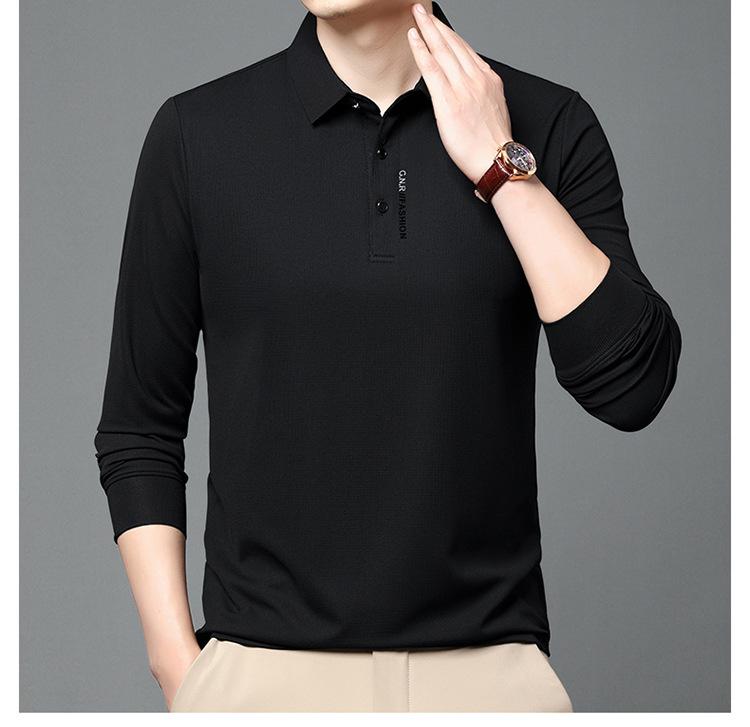 Camiseta de manga larga para hombre de primavera y otoño, camisa polo holgada fina con diamantes de imitación para hombres jóvenes y de mediana edad, camiseta de negocios superior