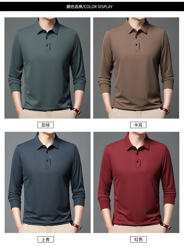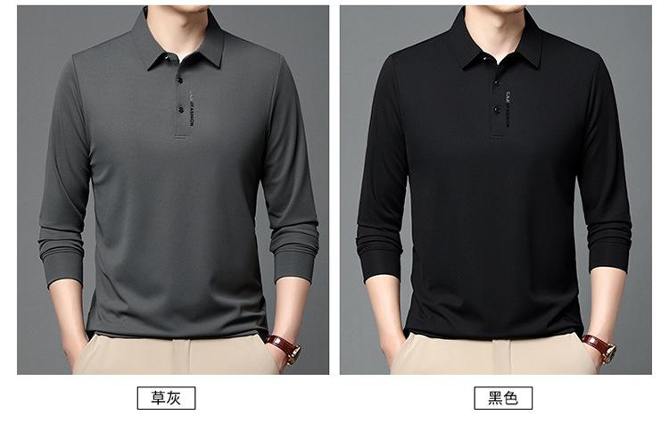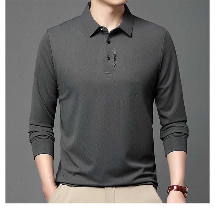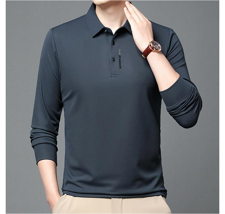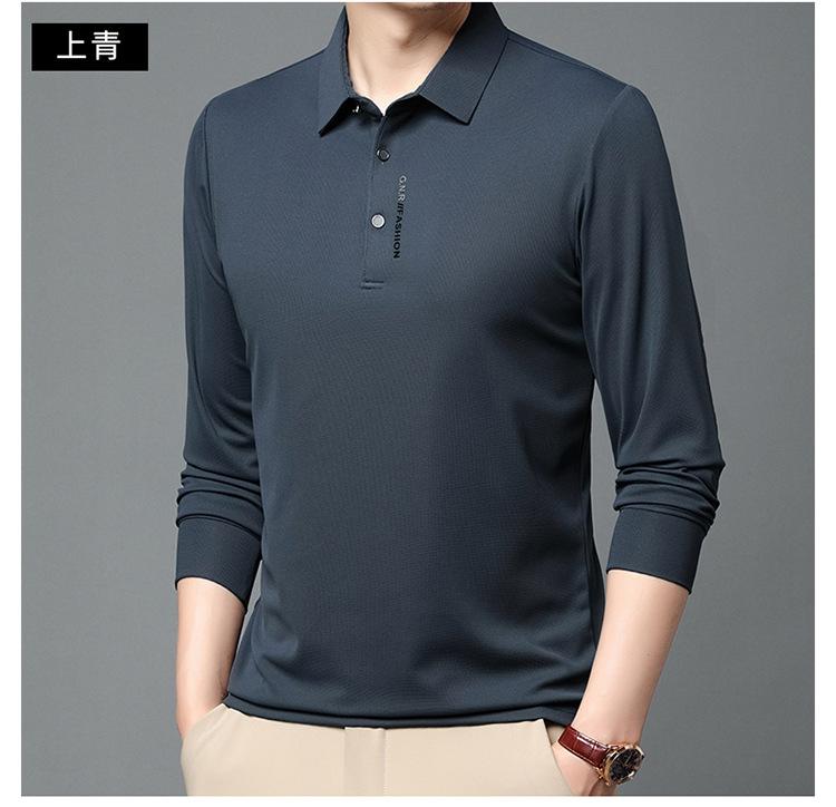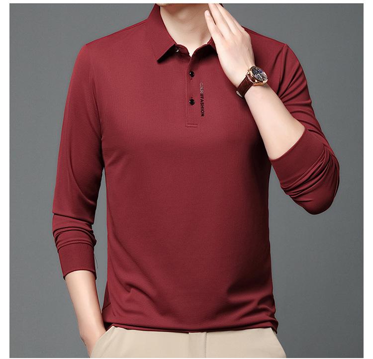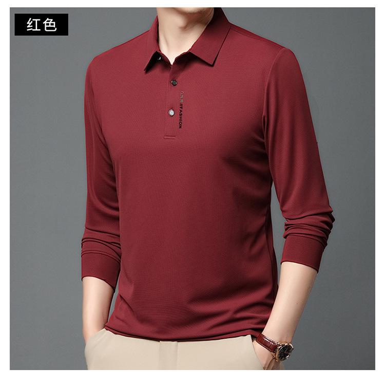 Camiseta de manga larga para hombre de primavera y otoño, camisa polo holgada fina con diamantes de imitación para hombres jóvenes y de mediana edad, camiseta de negocios superior