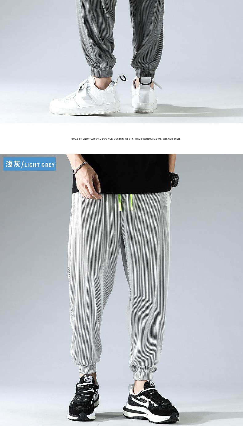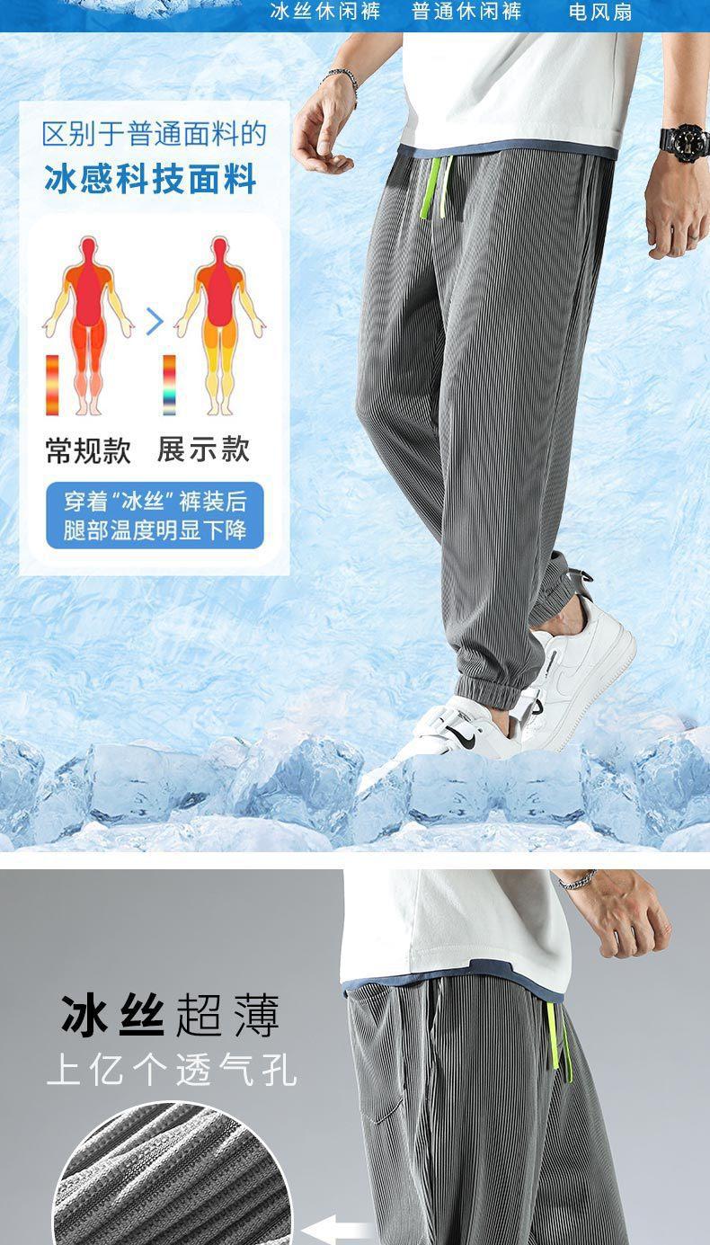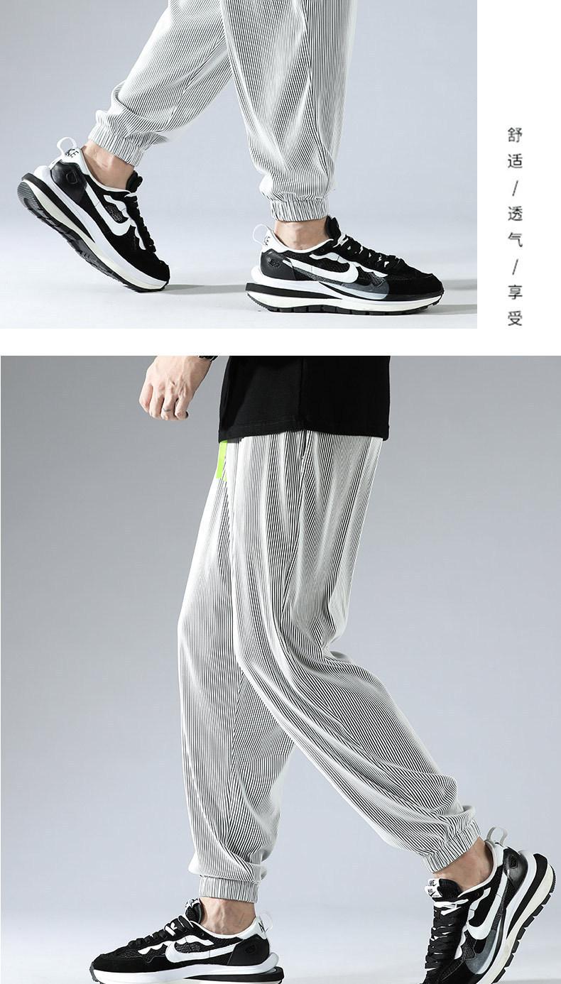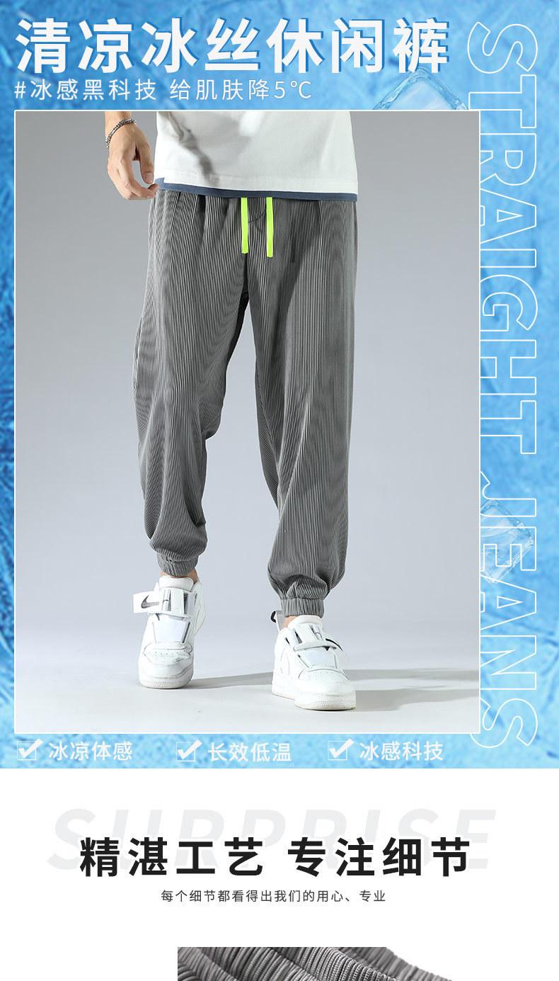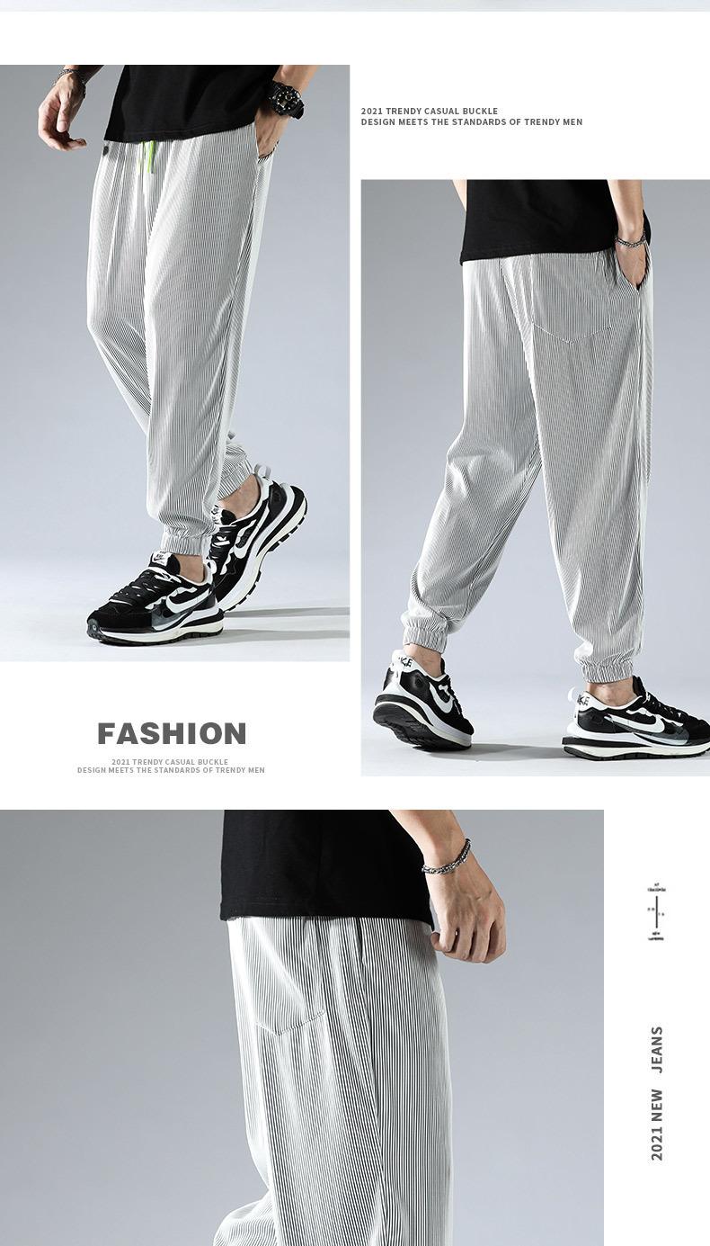 Pantalones de seda de hielo para hombre, nuevos pantalones deportivos holgados de talla grande, finos y recortados, de secado rápido, a rayas, informales, de verano