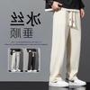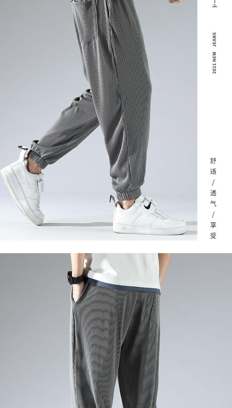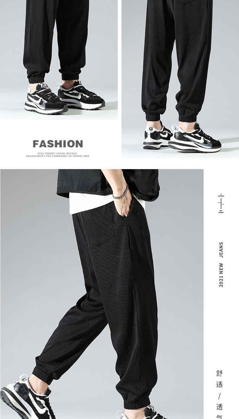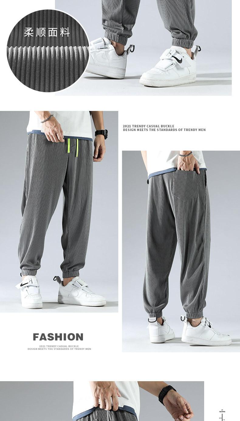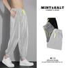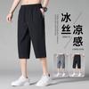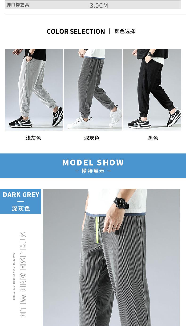 Pantalones de seda de hielo para hombre, nuevos pantalones deportivos holgados de talla grande, finos y recortados, de secado rápido, a rayas, informales, de verano