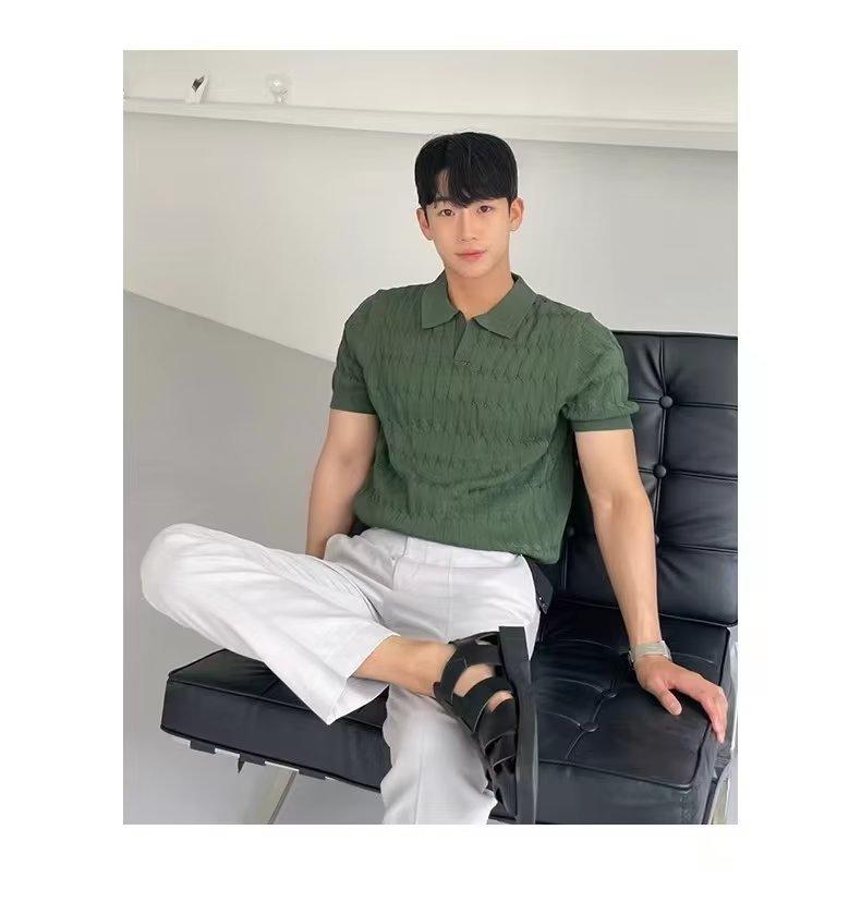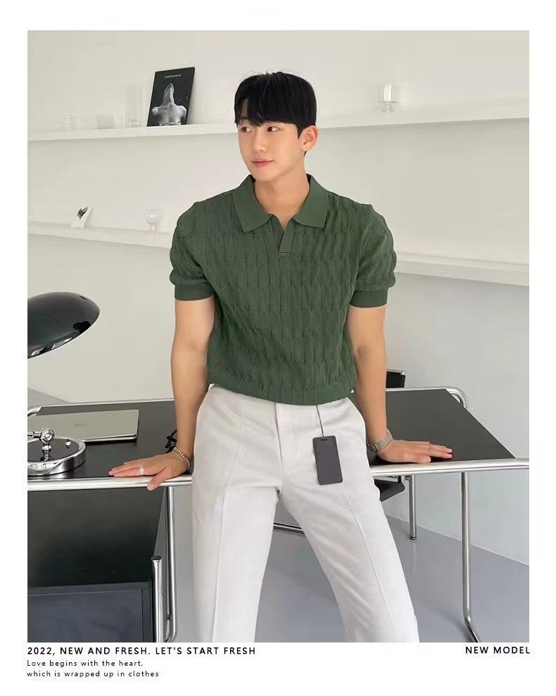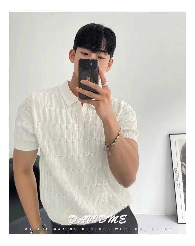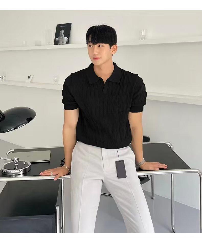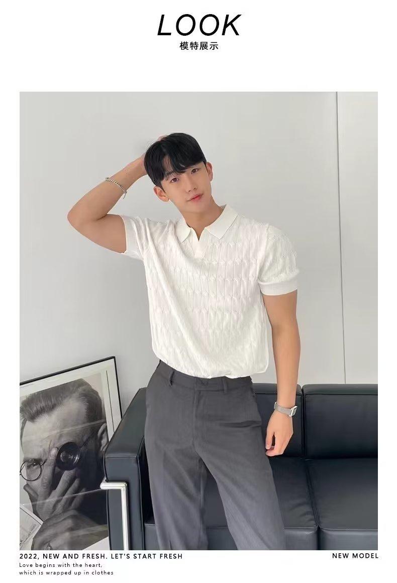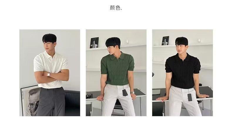 Polo de manga corta de punto para hombre de verano, camiseta coreana ajustada de color sólido con solapa de seda helada, comercio exterior transfronterizo al por mayor