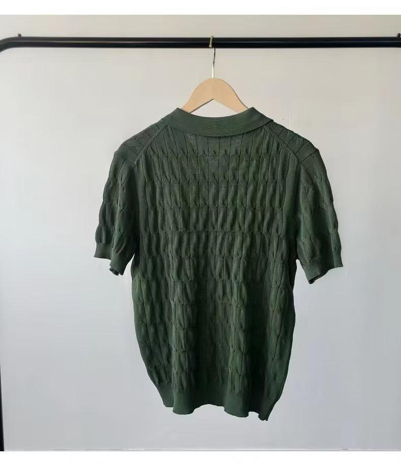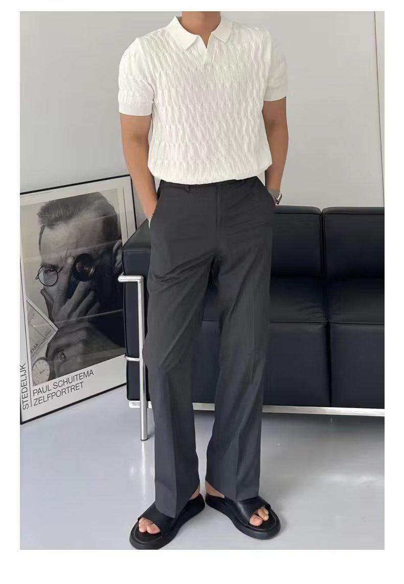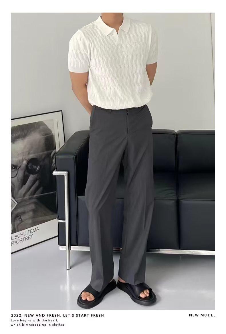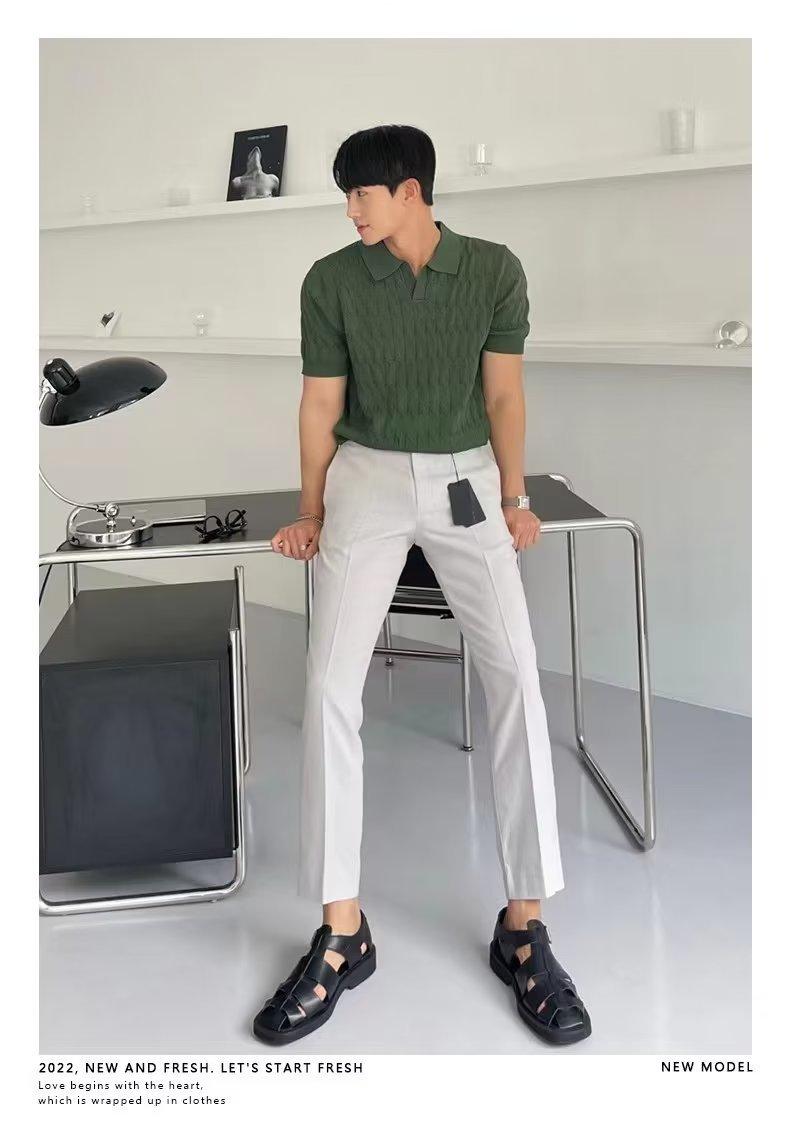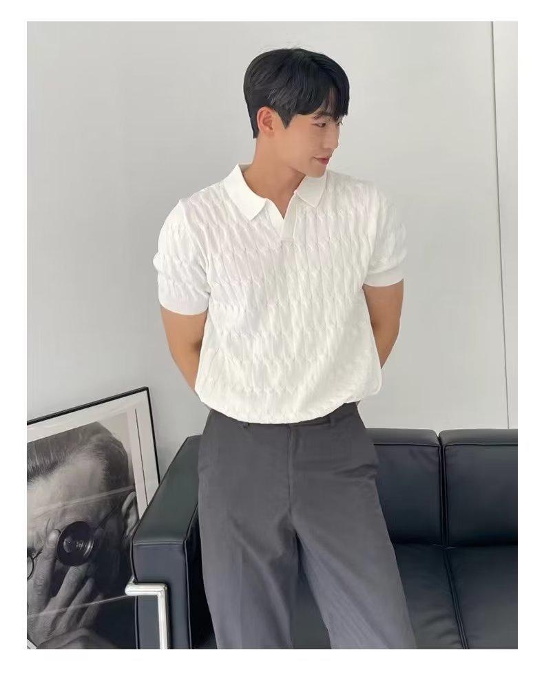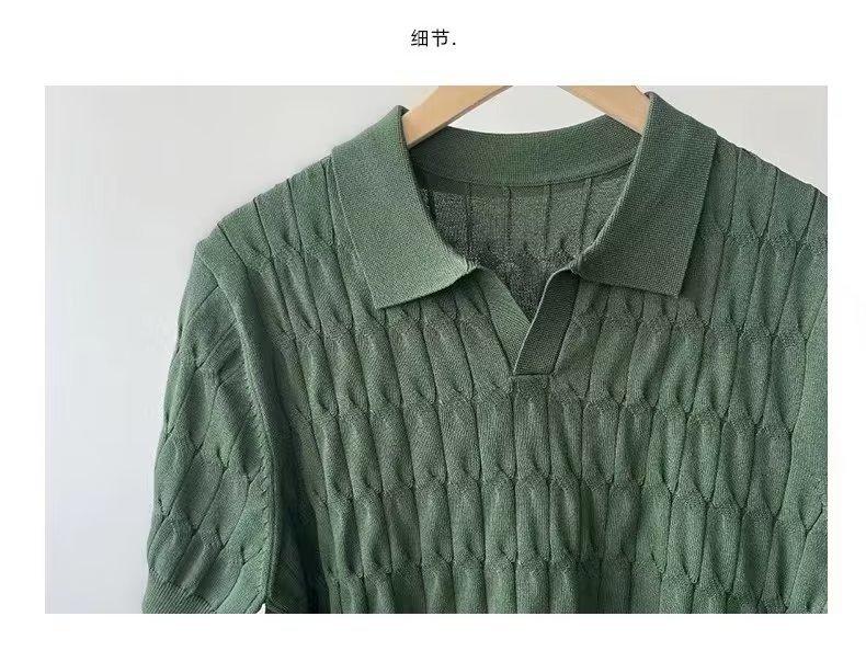 Polo de manga corta de punto para hombre de verano, camiseta coreana ajustada de color sólido con solapa de seda helada, comercio exterior transfronterizo al por mayor