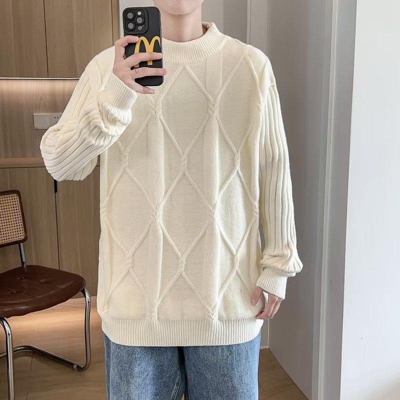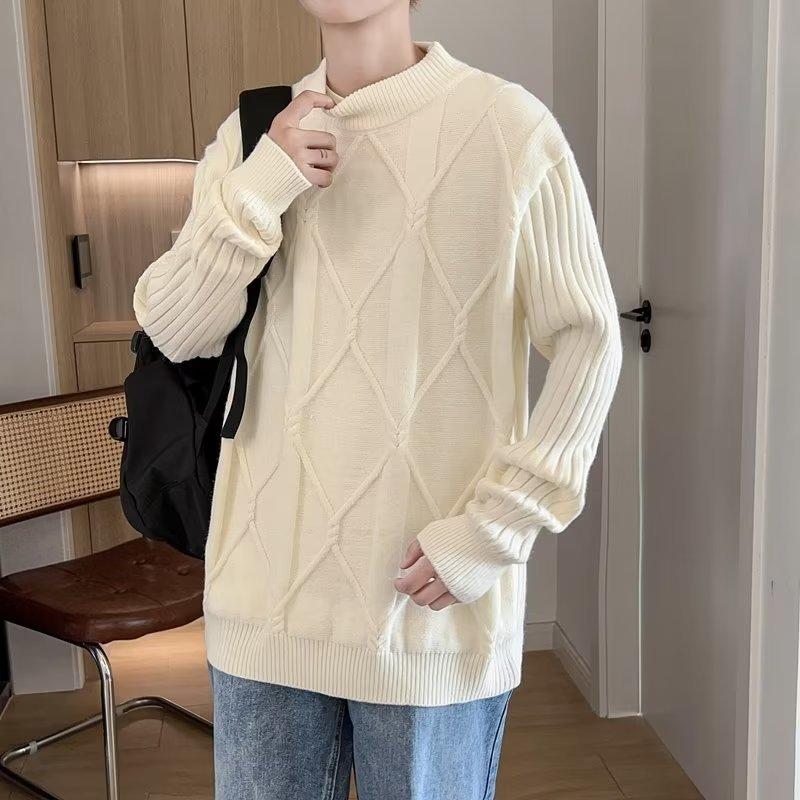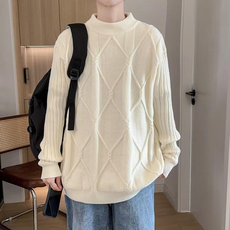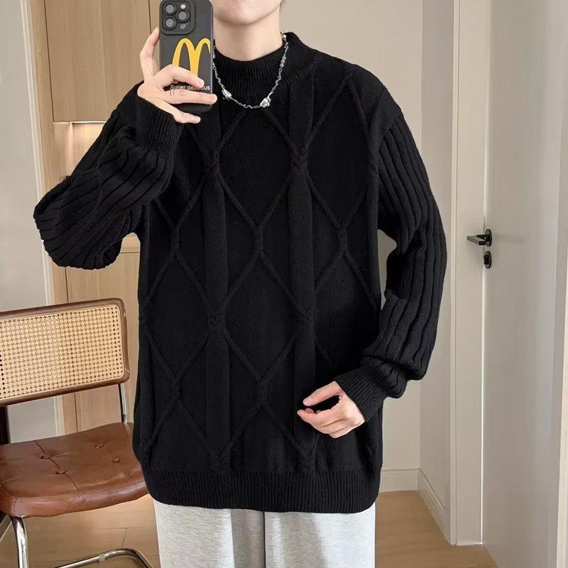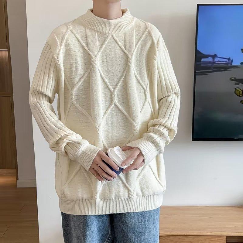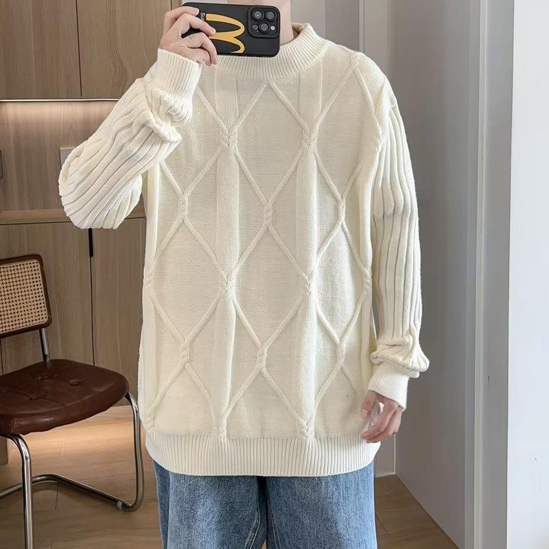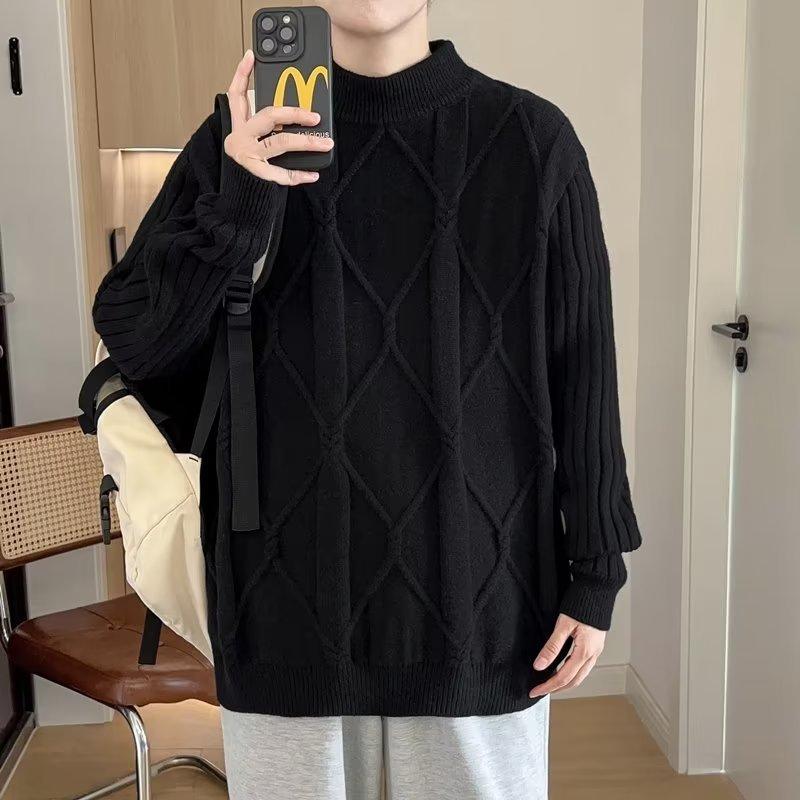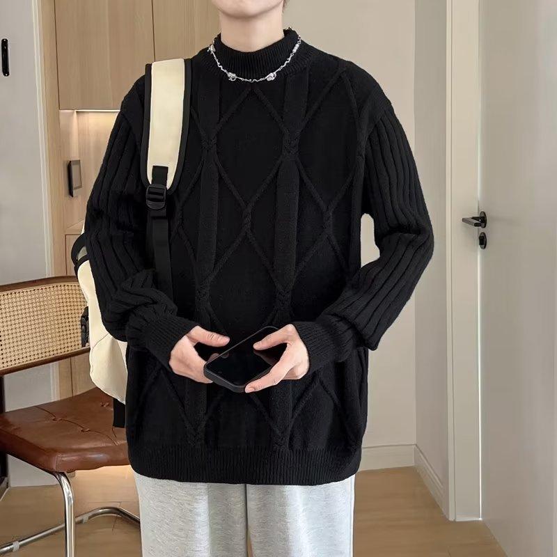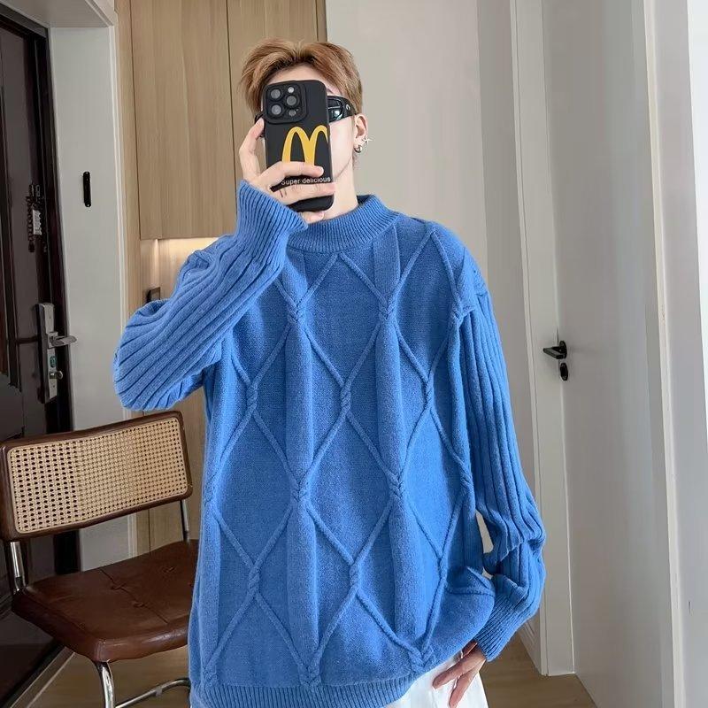 Suéter de punto para hombre, otoño e invierno, suéter de punto para hombre, jersey holgado de primavera y otoño, cuello redondo, manga larga