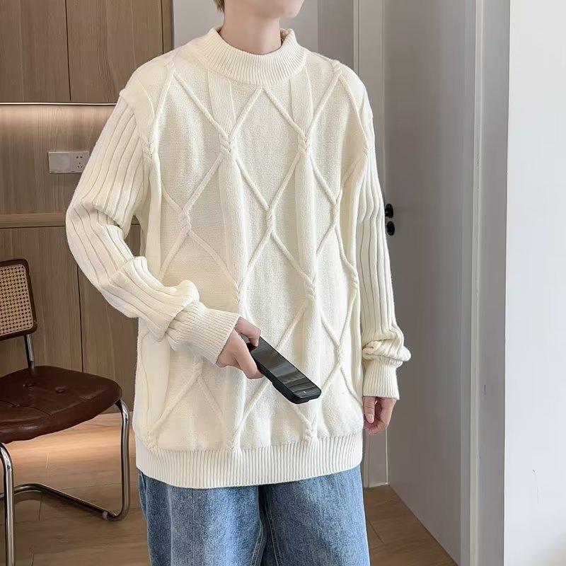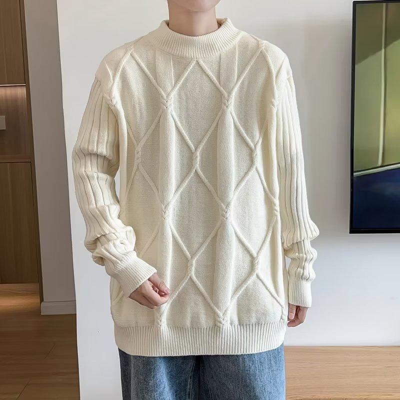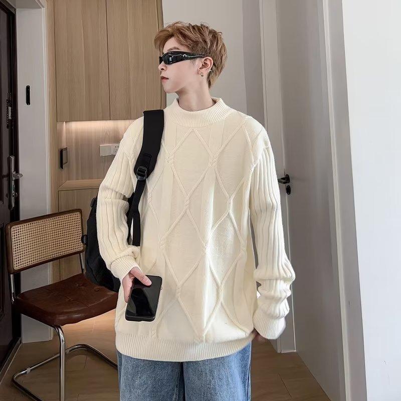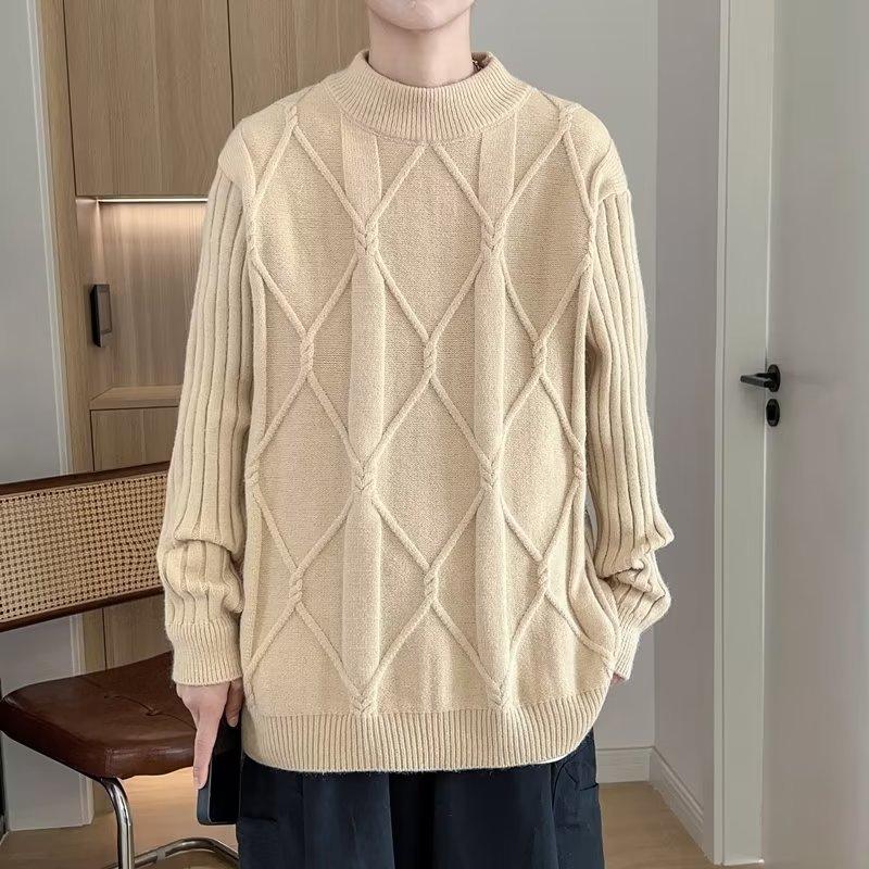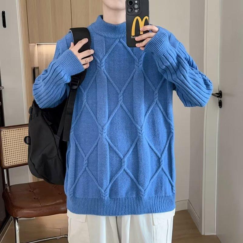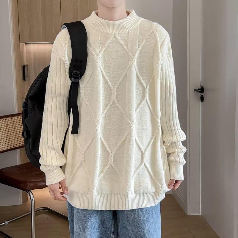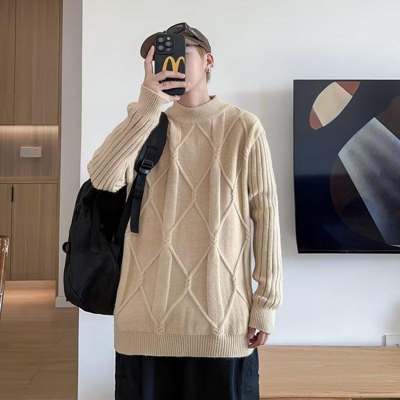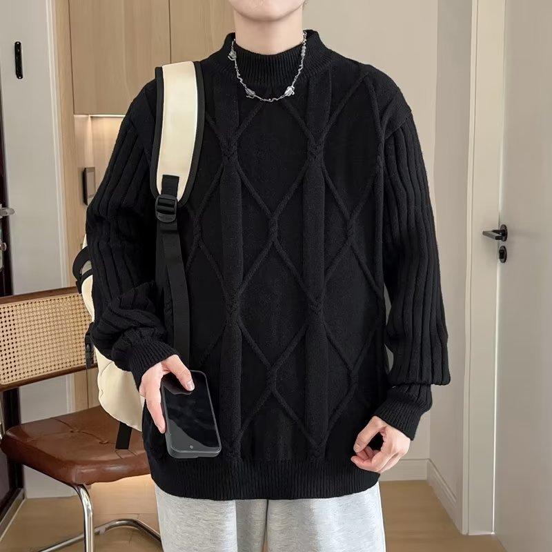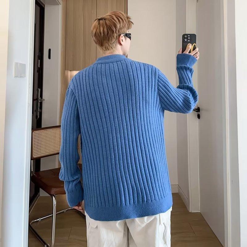 Suéter de punto para hombre, otoño e invierno, suéter de punto para hombre, jersey holgado de primavera y otoño, cuello redondo, manga larga