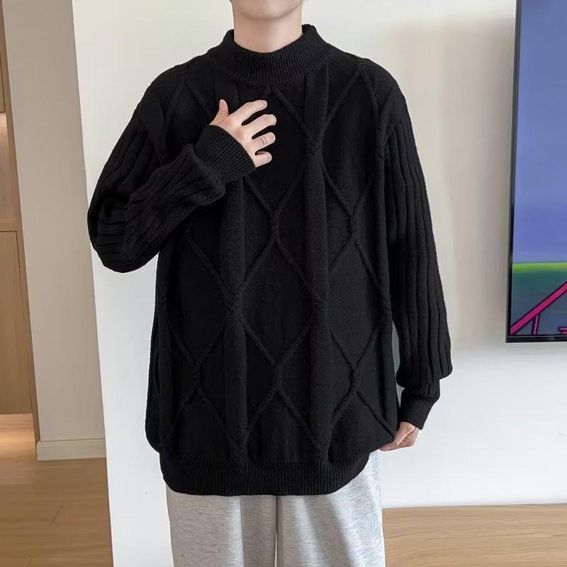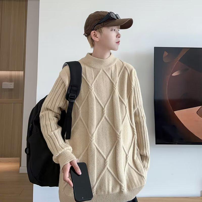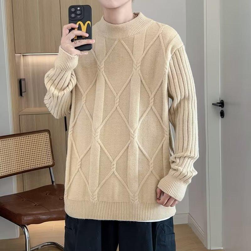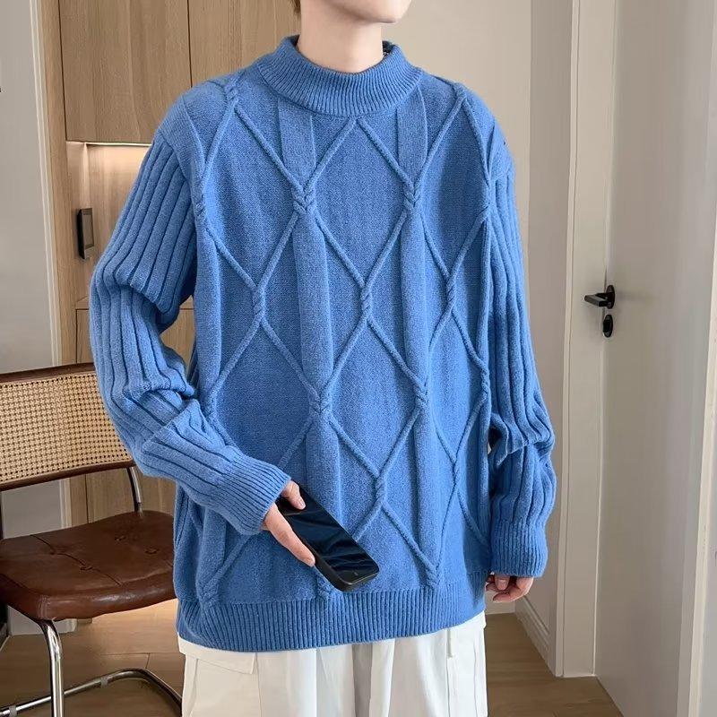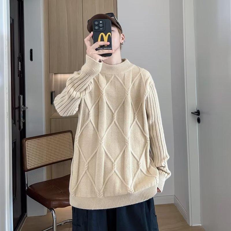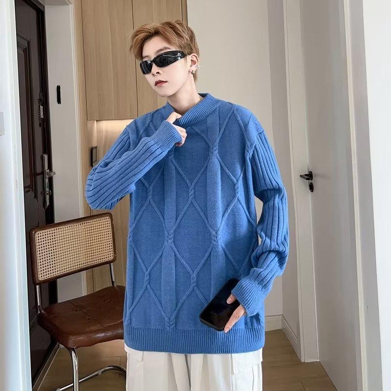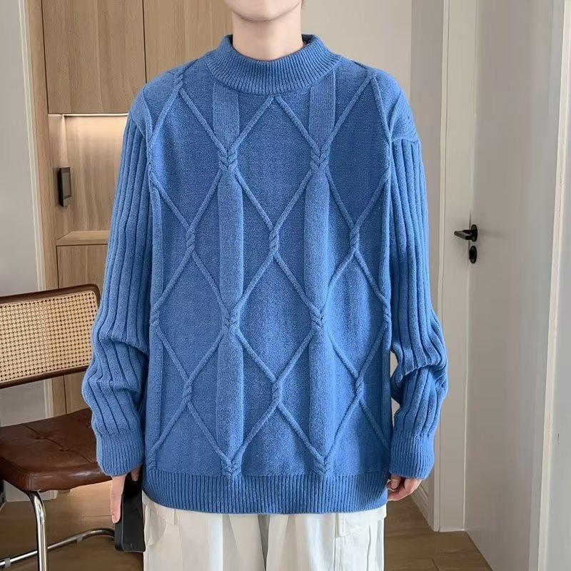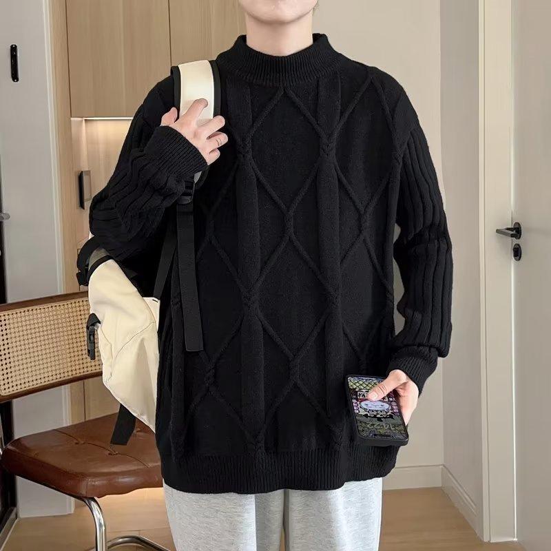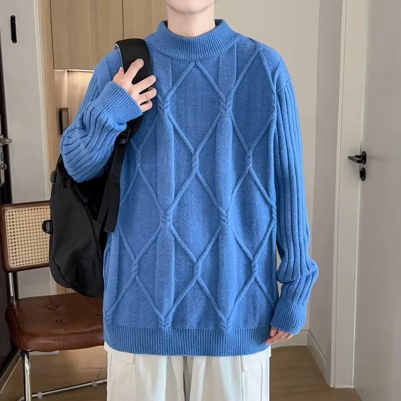 Suéter de punto para hombre, otoño e invierno, suéter de punto para hombre, jersey holgado de primavera y otoño, cuello redondo, manga larga