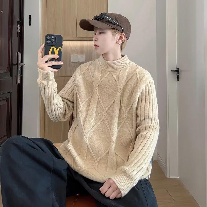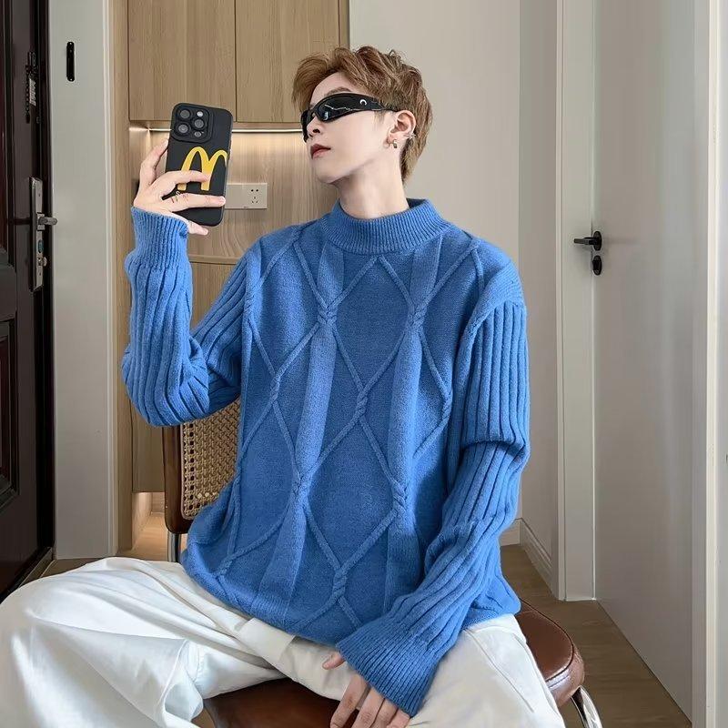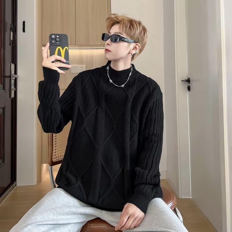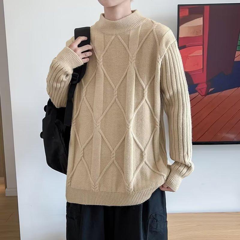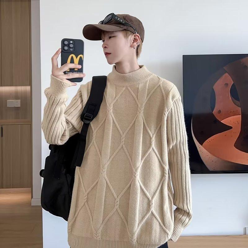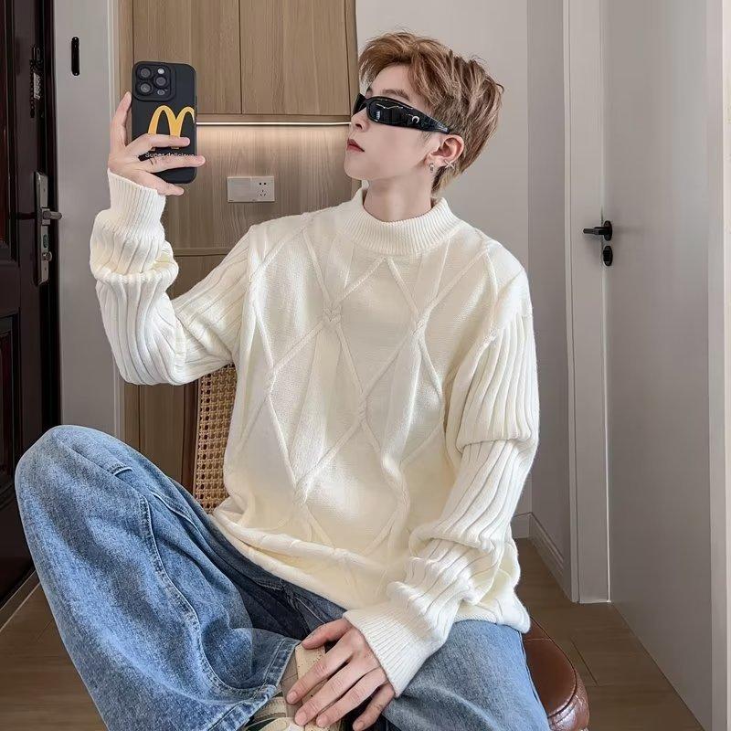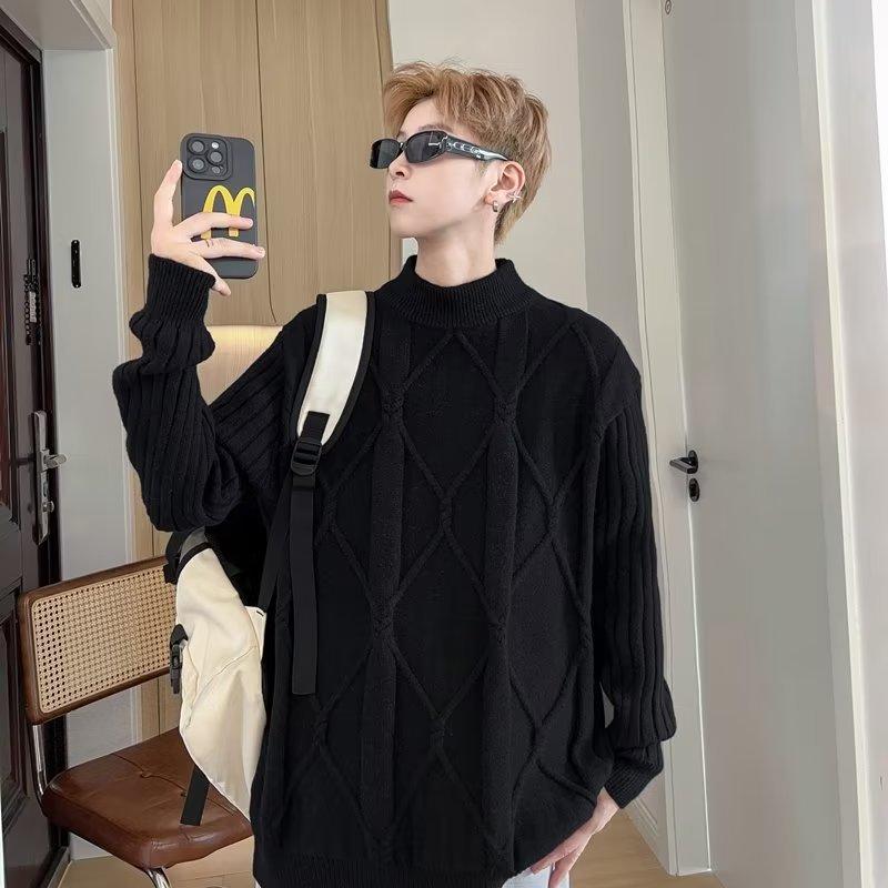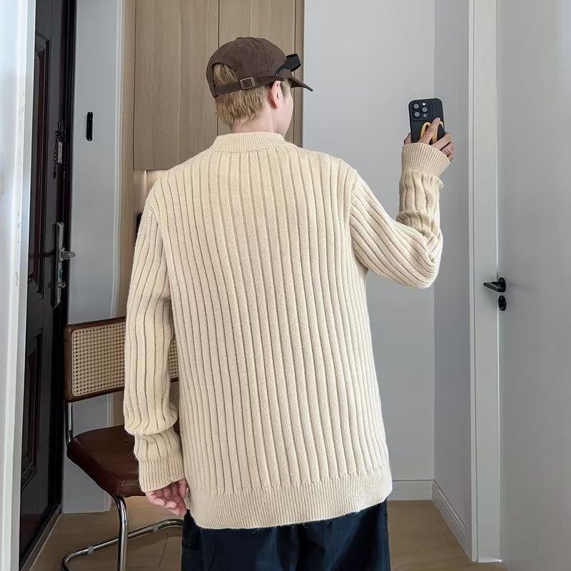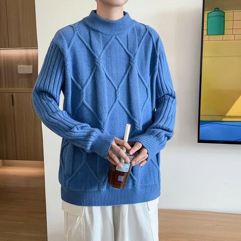 Suéter de punto para hombre, otoño e invierno, suéter de punto para hombre, jersey holgado de primavera y otoño, cuello redondo, manga larga