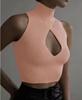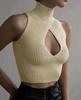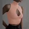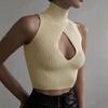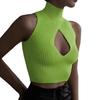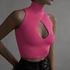 Chaleco corto sexy de color sólido europeo y americano con diseño hueco, nuevo top de verano con cuello alto y ombligo para chicas atractivas.