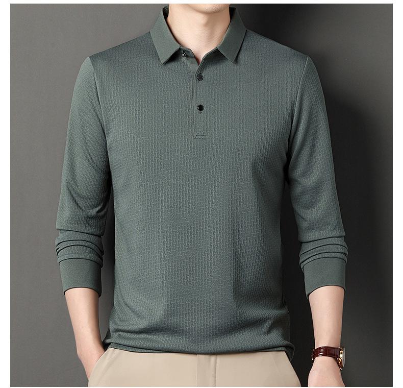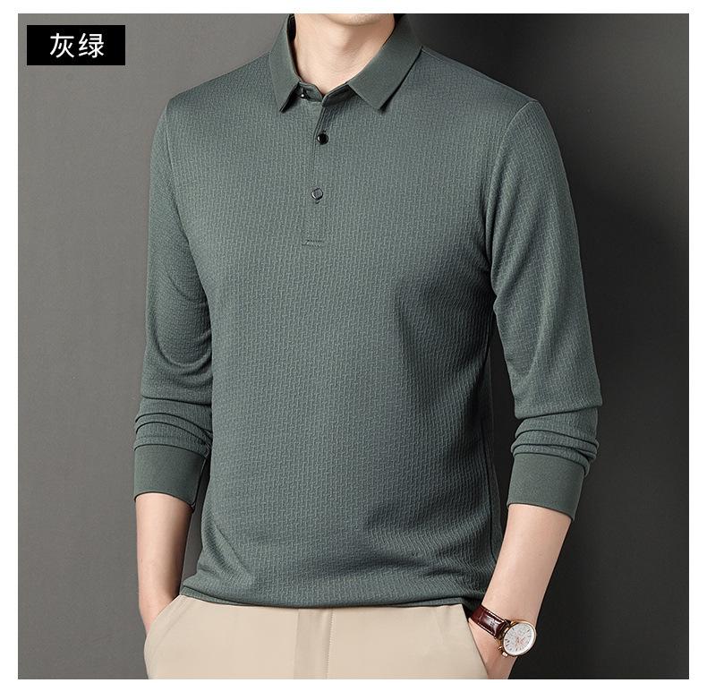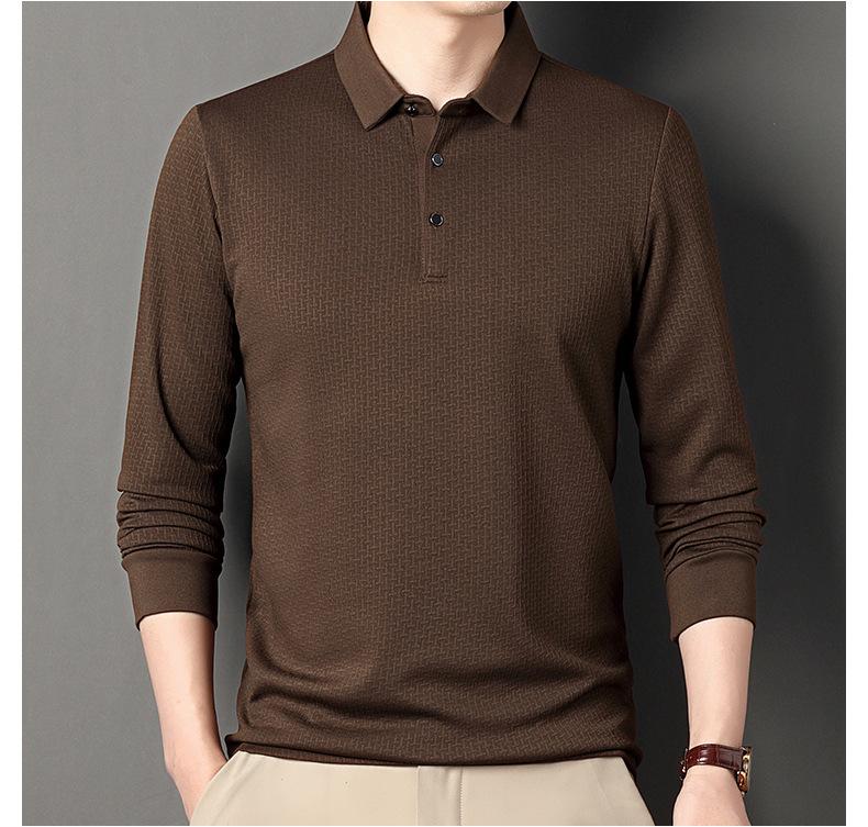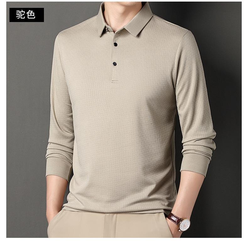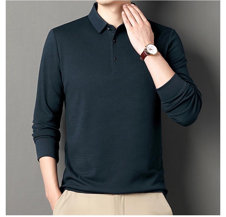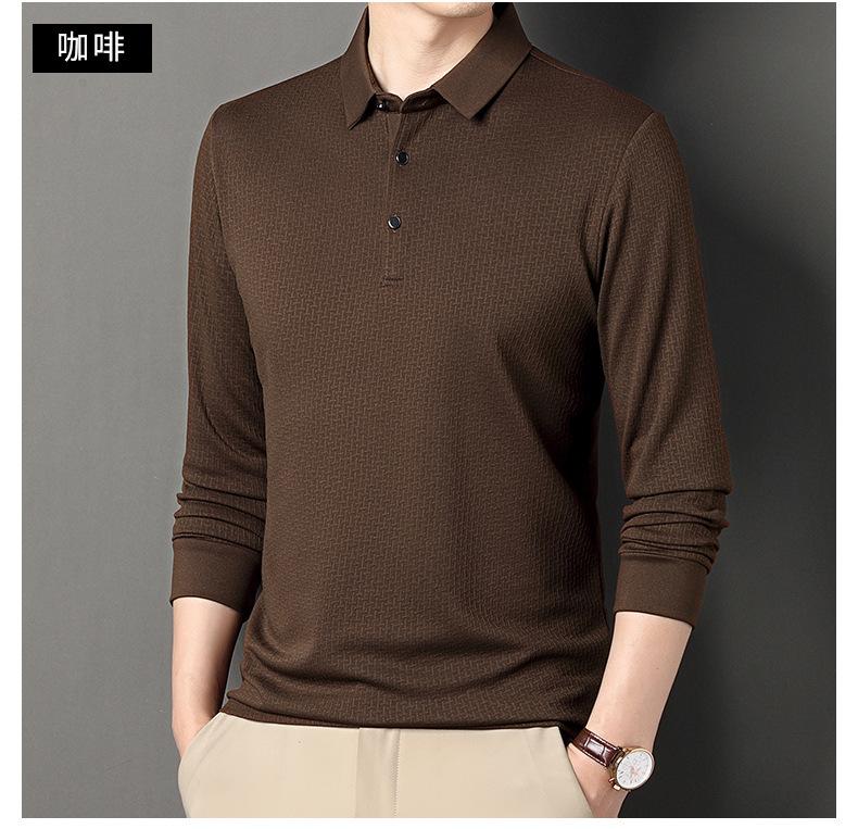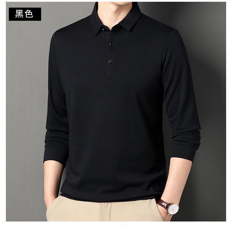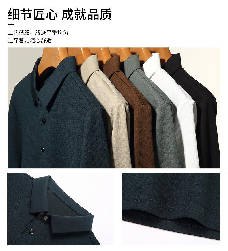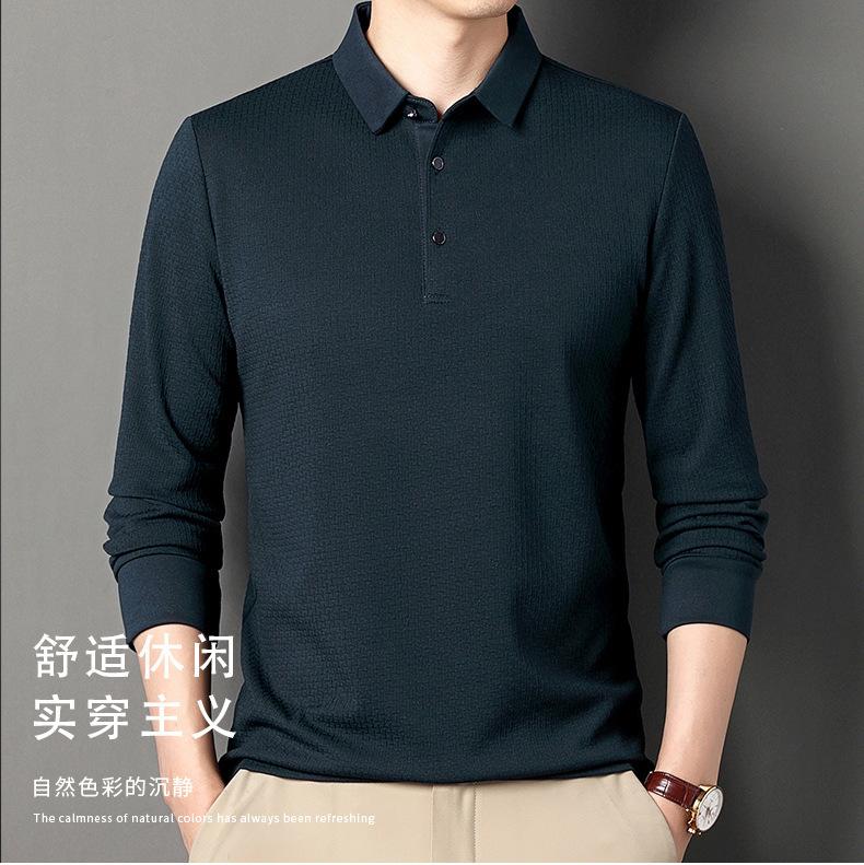Ropa de hombre primavera 2025 se asemeja a camiseta jacquard de manga larga nueva para hombres de mediana edad y jóvenes, polo business casual de color sólido