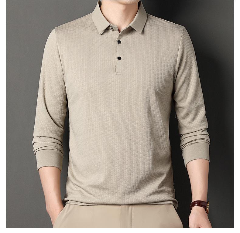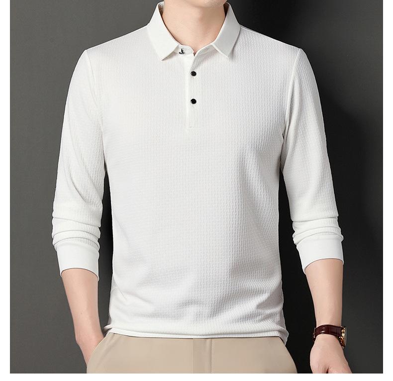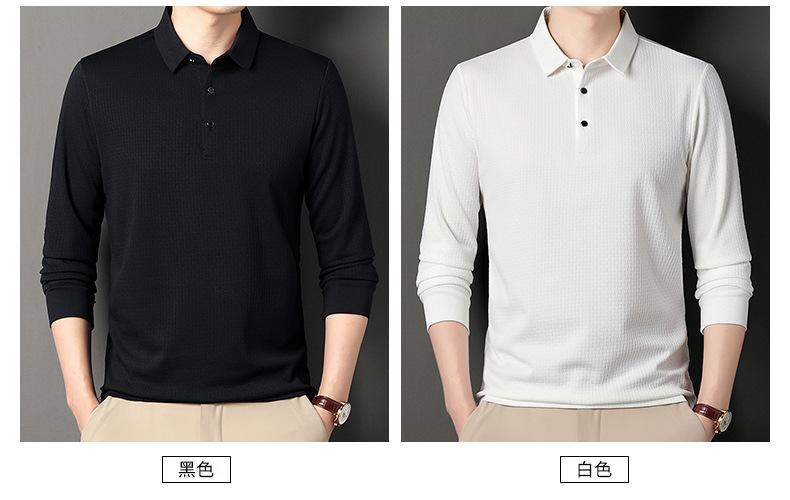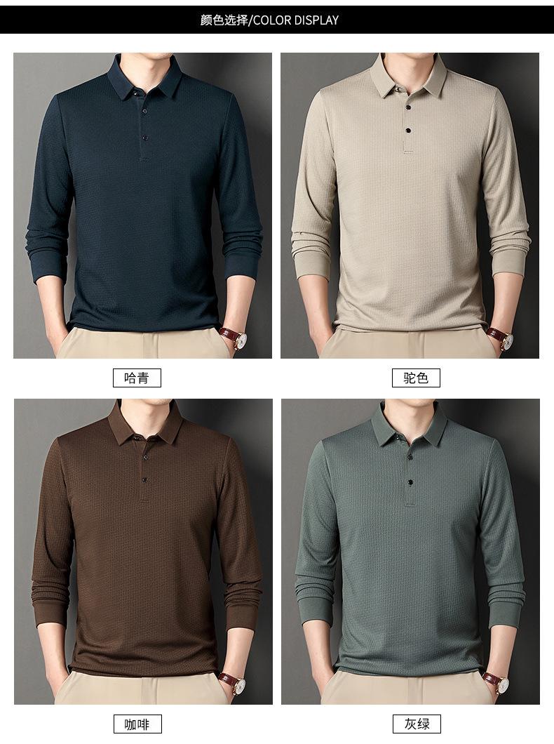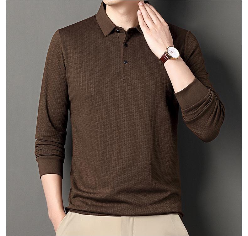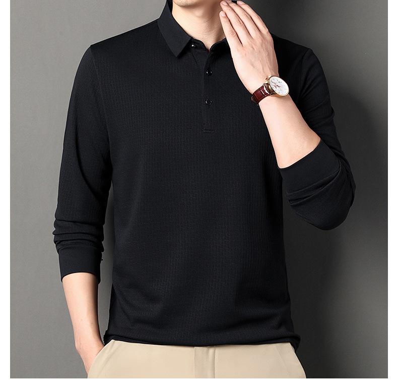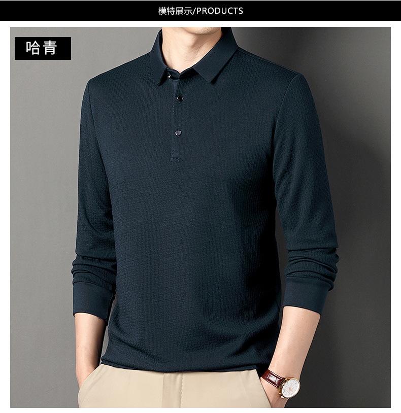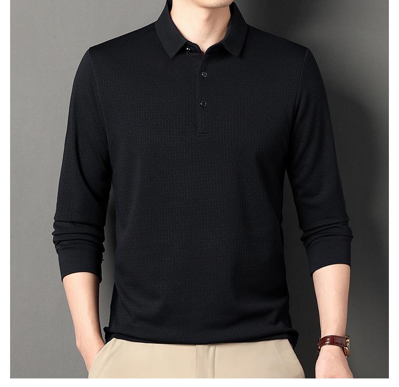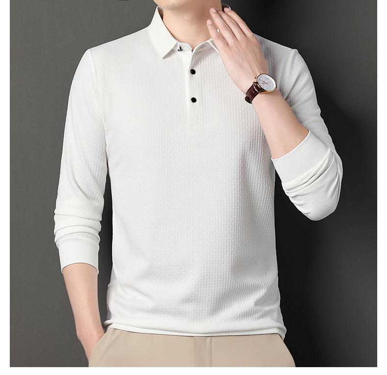 Ropa de hombre primavera 2025 se asemeja a camiseta jacquard de manga larga nueva para hombres de mediana edad y jóvenes, polo business casual de color sólido