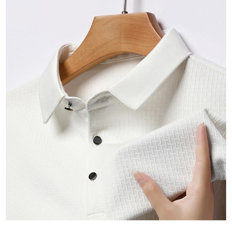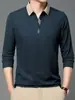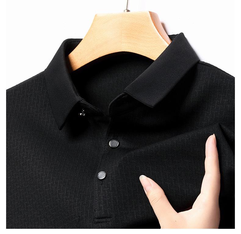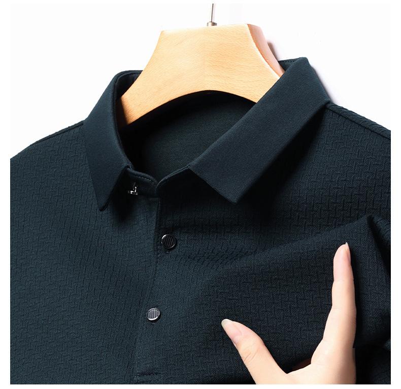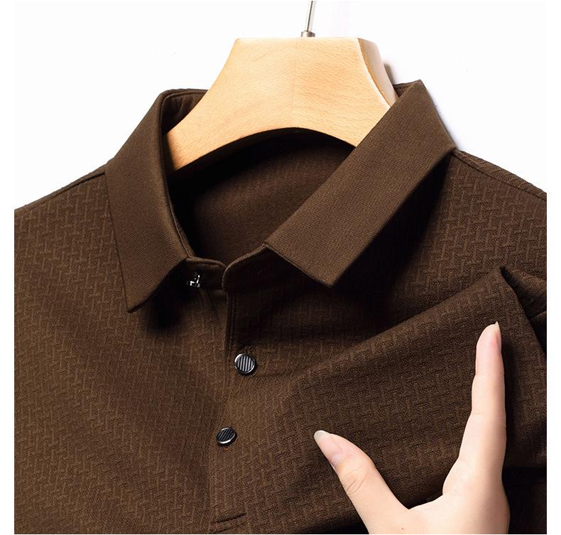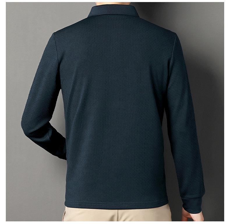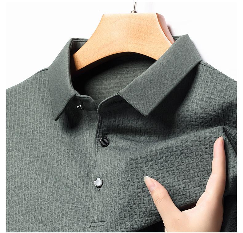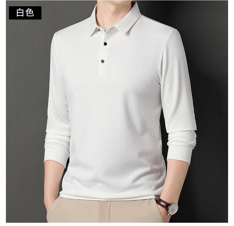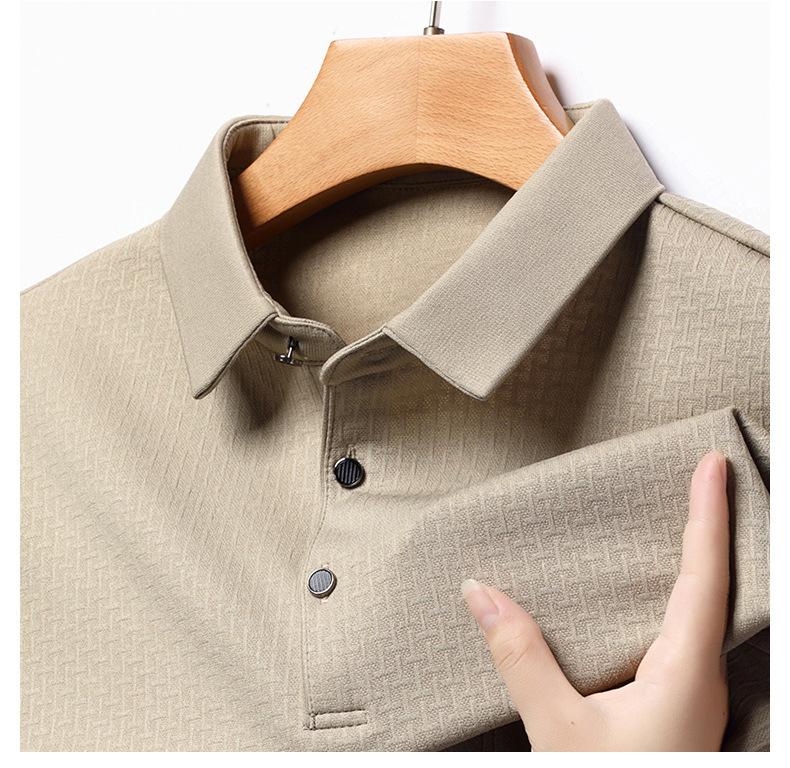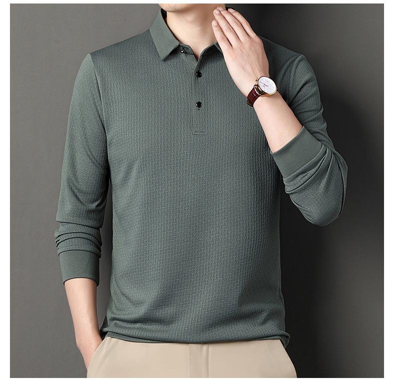 Ropa de hombre primavera 2025 se asemeja a camiseta jacquard de manga larga nueva para hombres de mediana edad y jóvenes, polo business casual de color sólido