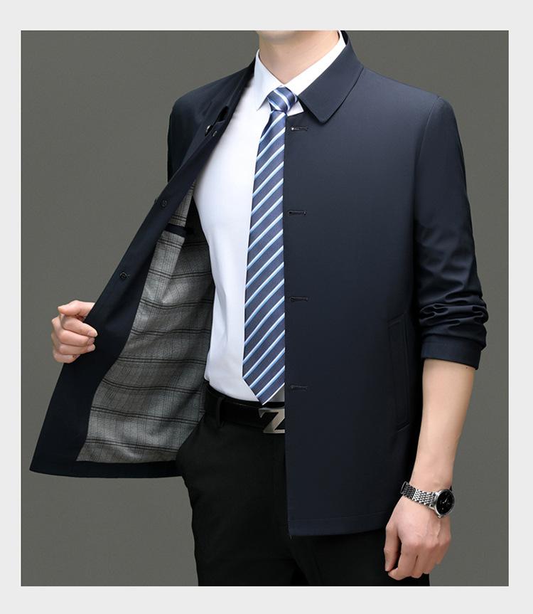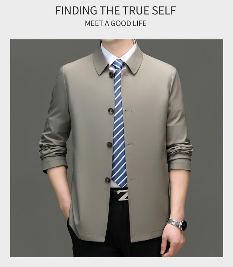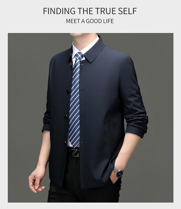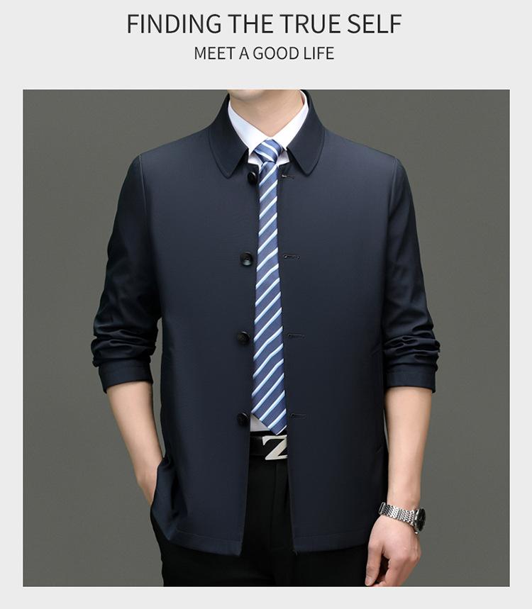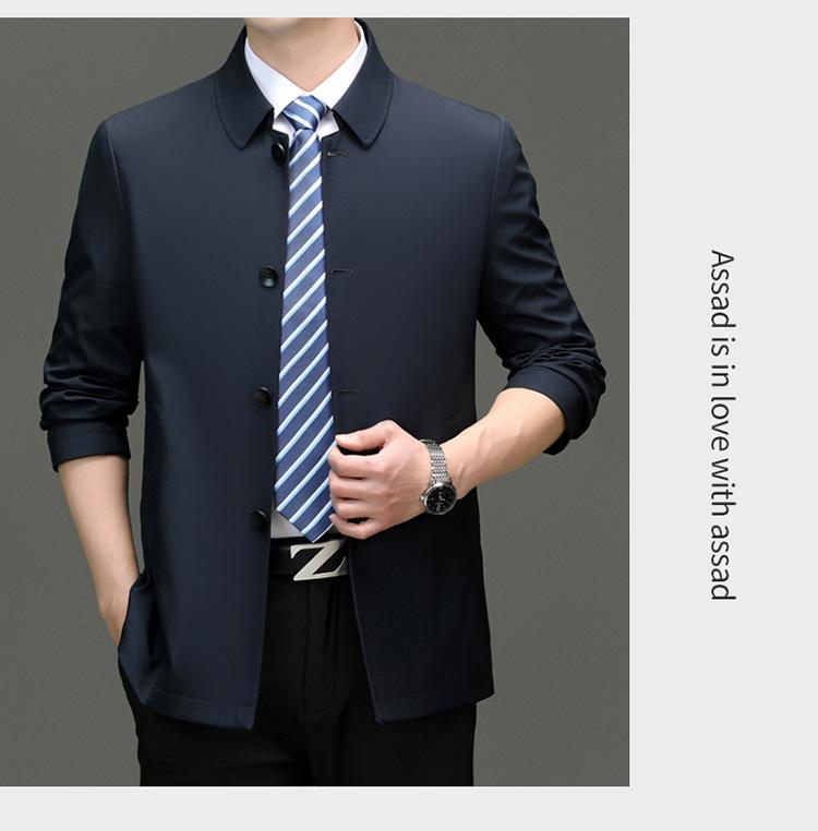 Chaqueta de otoño para hombre de mediana edad, nueva, informal, de negocios, de color liso, con cremallera, cuello cuadrado, fina, para hombre y papá